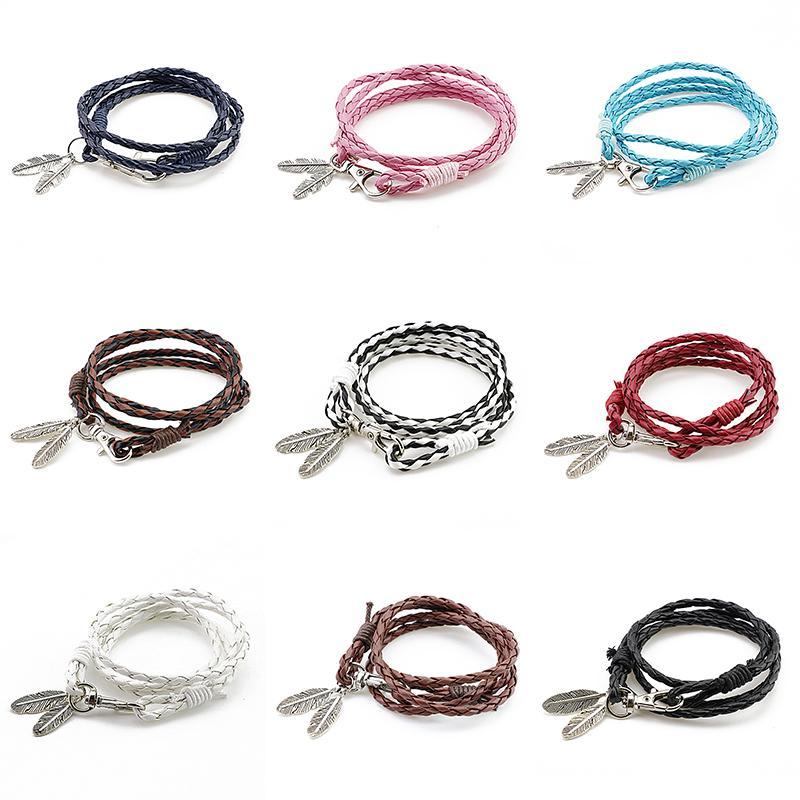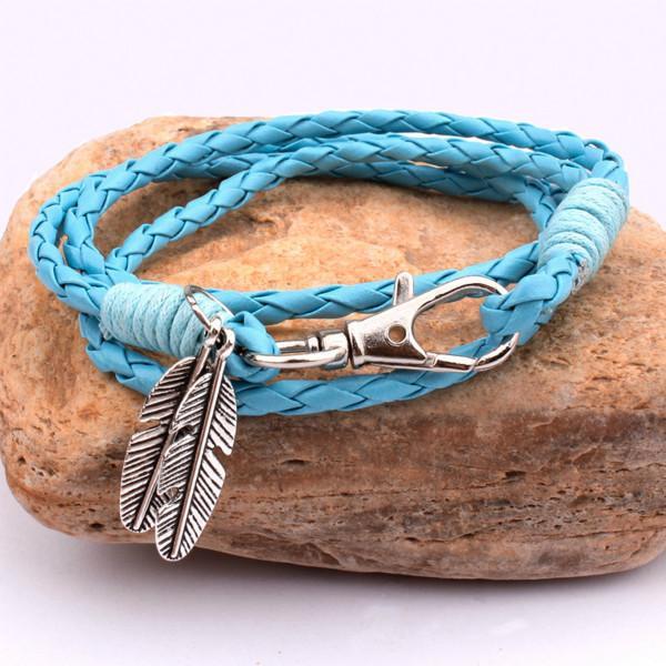 Feather Charm Multiwrap Leather Bracelet