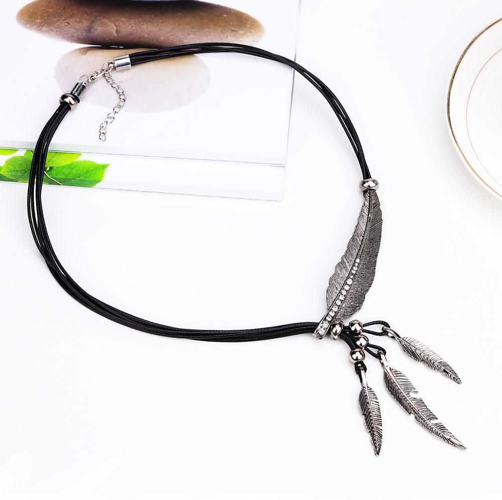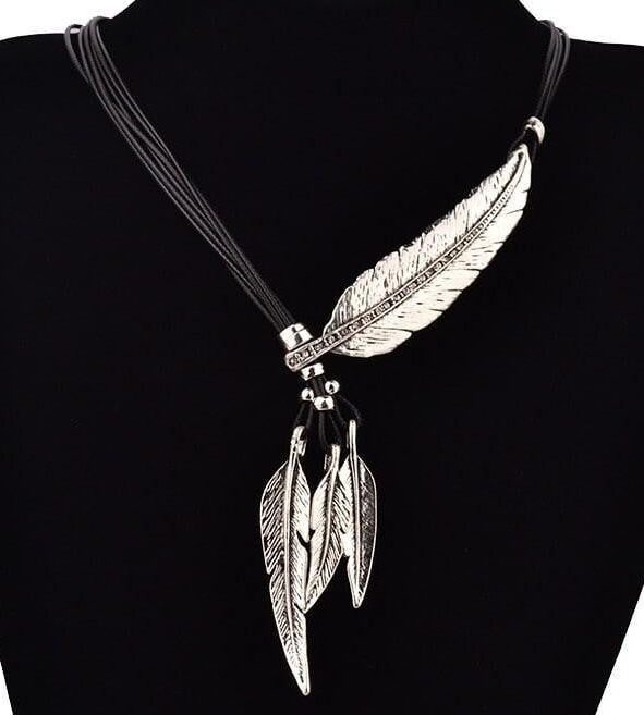Necklace Feature:3 hanging feathers and 1 large feather across the collarbone.