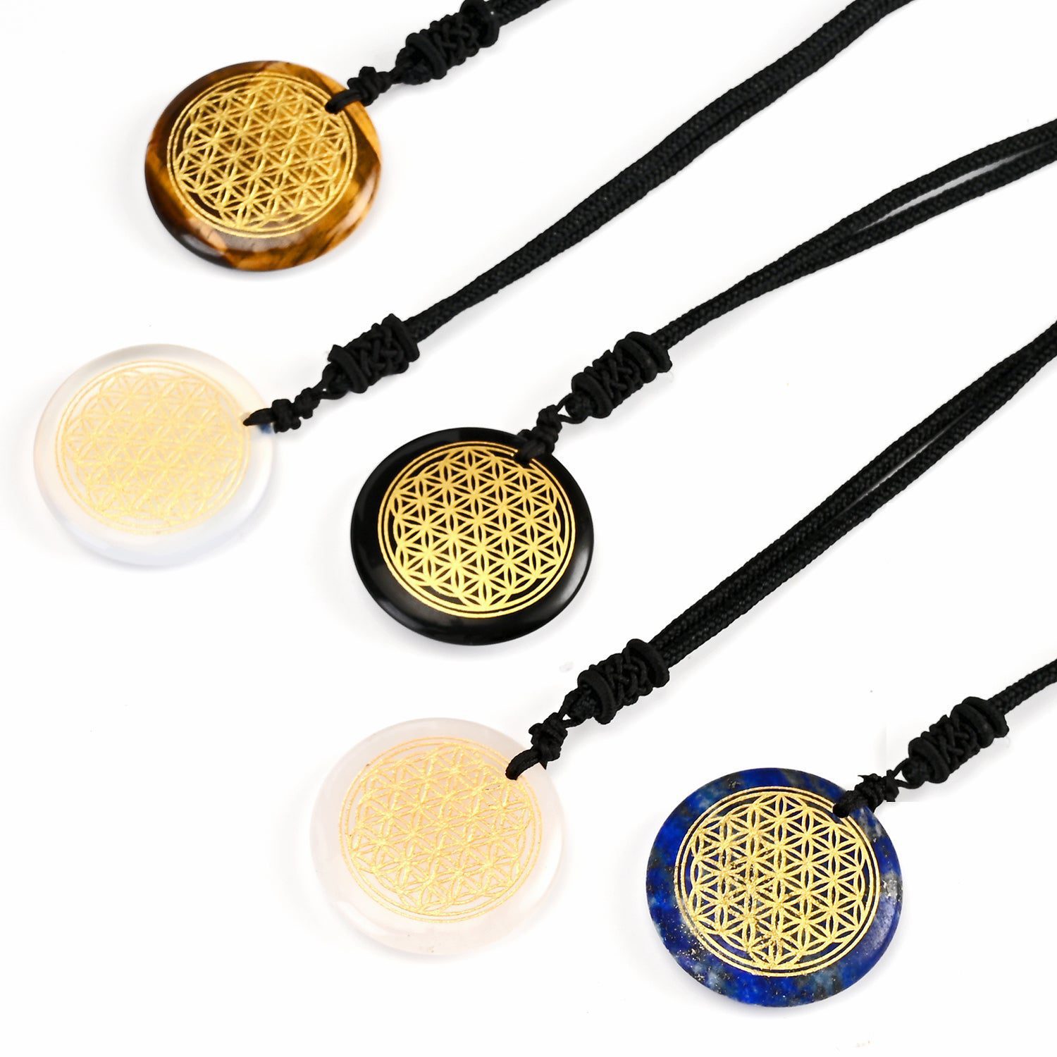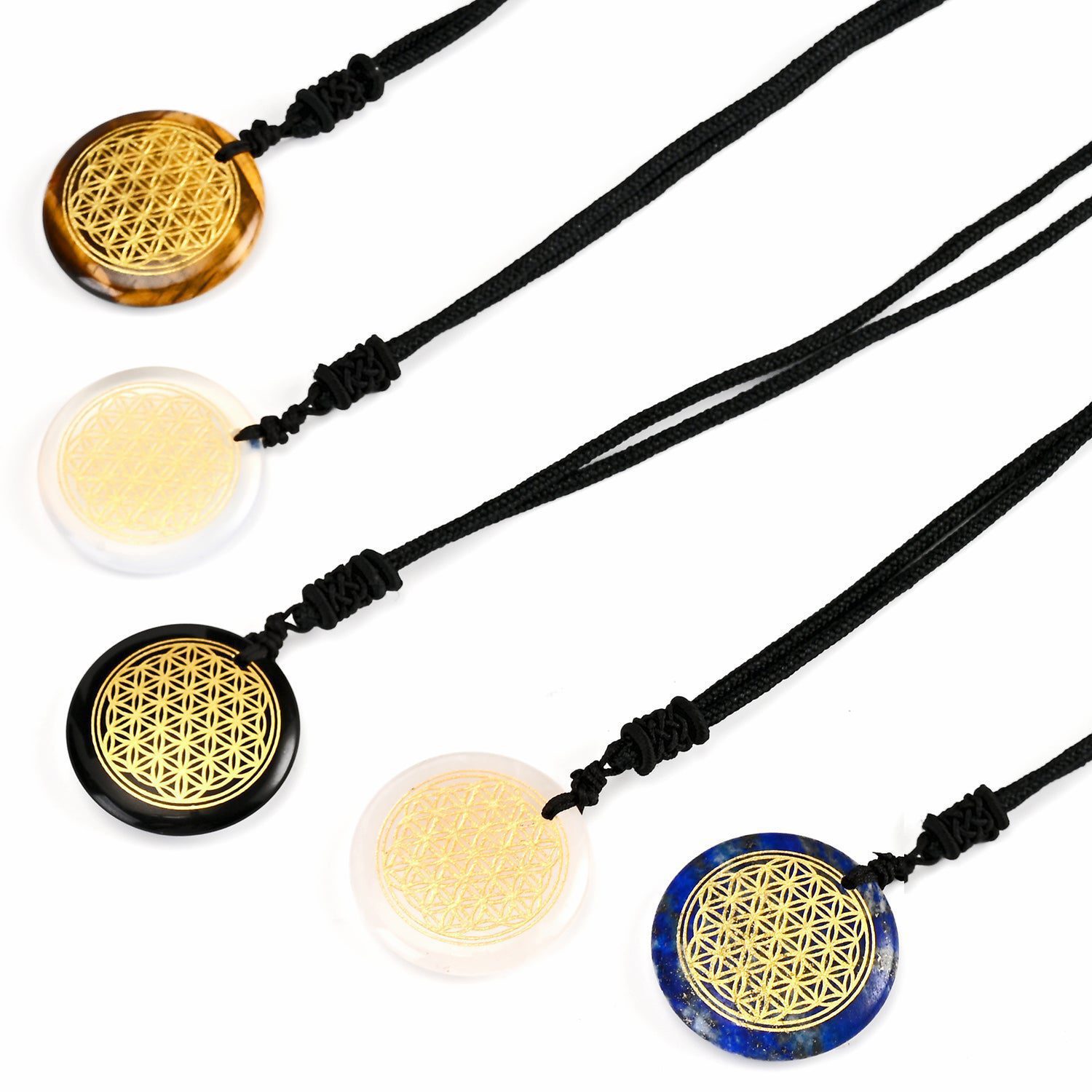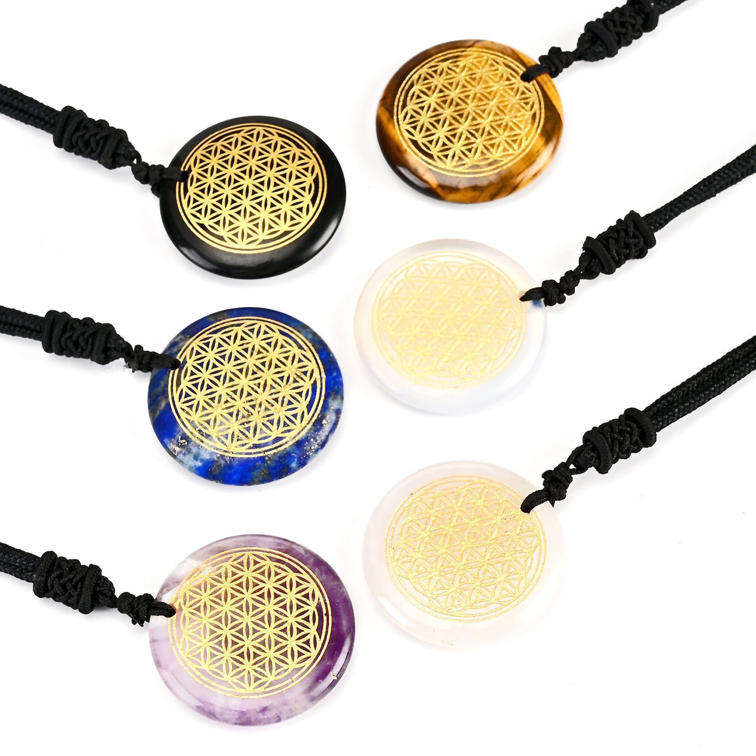 Embrace the sacred geometry of the universe with our captivating Flower of Life Chakra Necklace, a profound piece of jewelry that harmonizes your energy centers and resonates with the beauty of the cosmos. Available in an array of gemstones including Obsidian, Tiger Eye, Green Aventurine, Rose Quartz, Red Jasper, Clear Quartz, Lapis Lazuli, Amethyst, Red Agate, and Opalite, this necklace embodies the balance and unity of the Flower of Life pattern.