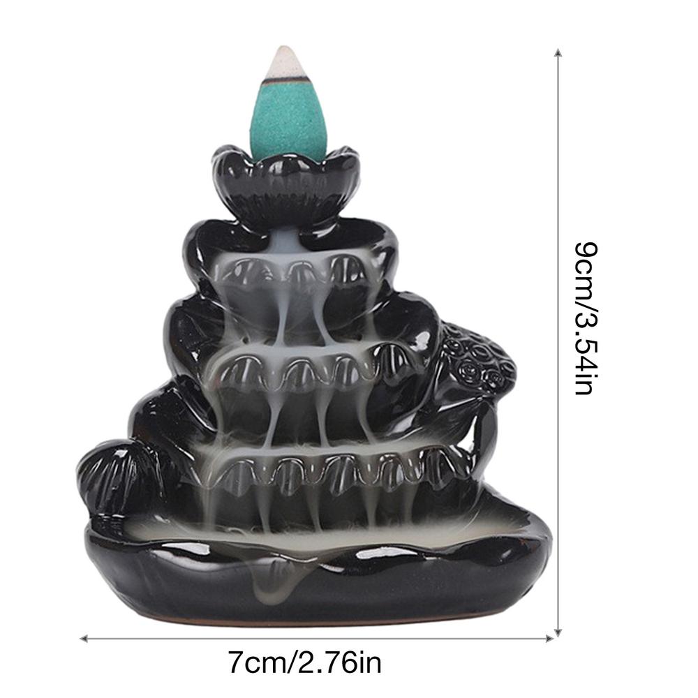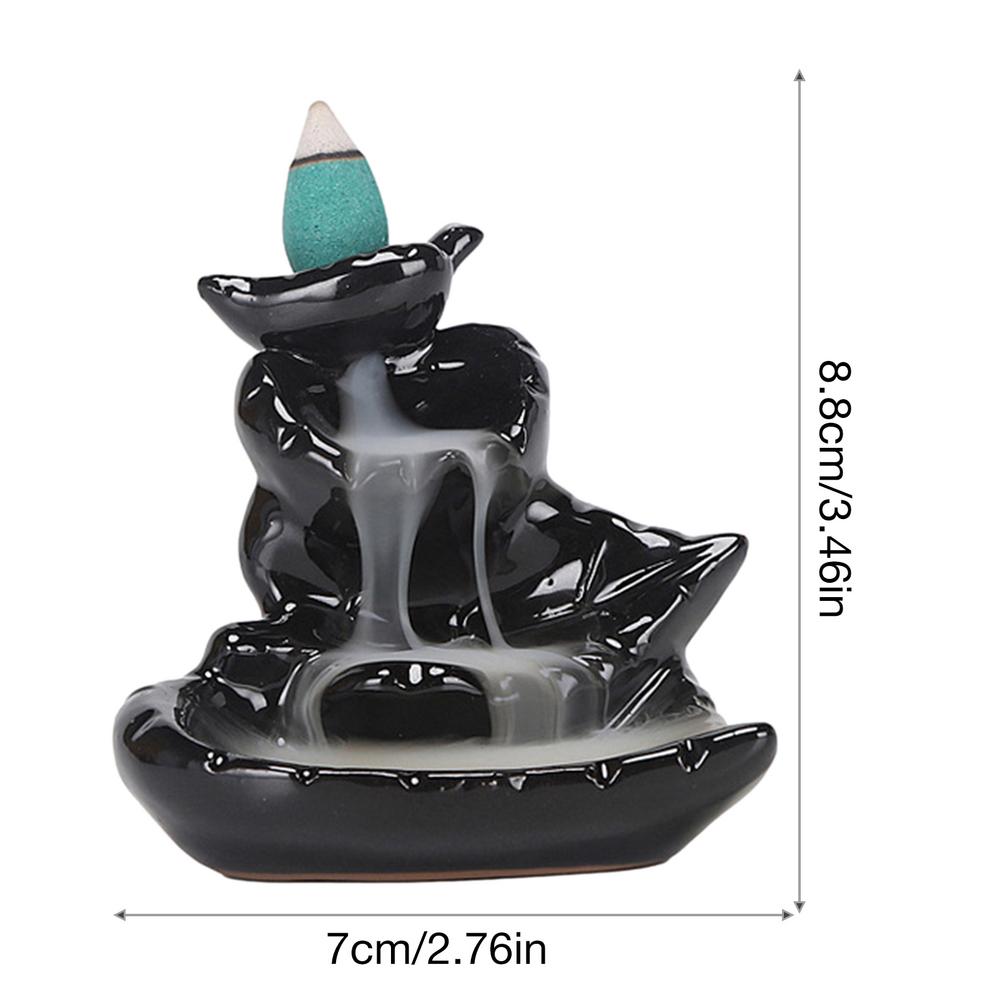 The Lotus Leaf: With dimensions of about 3.54in x 2.76in x 3.46in, this burner resembles a tender lotus leaf, inviting you to immerse yourself in a serene world. As the backflow incense cascades gently, it symbolizes the cycle of renewal and purity, bringing a sense of rejuvenation to your surroundings.