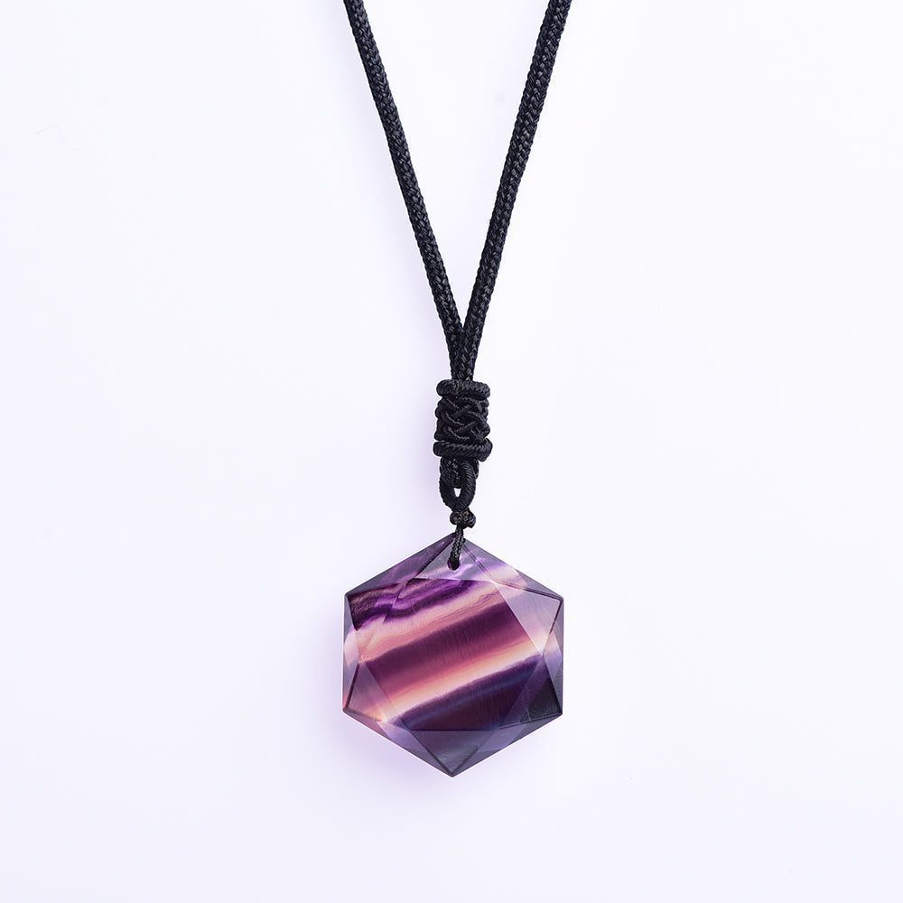 Step into a realm of vibrant transformation with our exquisite Fluorite Pentagon Necklace, a captivating piece of jewelry that encapsulates the mesmerizing hues and powerful energy of Fluorite. This necklace, meticulously crafted from the finest Fluorite, radiates an aura of balance and harmony that resonates with the depths of your spirit.