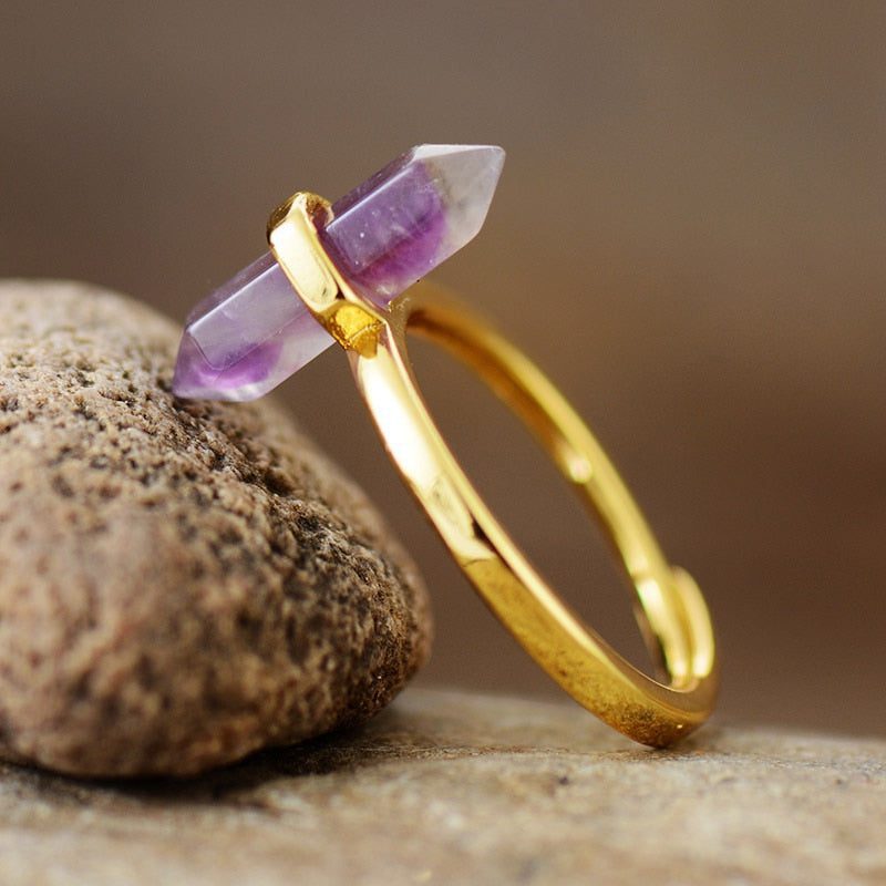 An elegant minimalist ring, featuring a hexagonal cone gemstone of your choice.