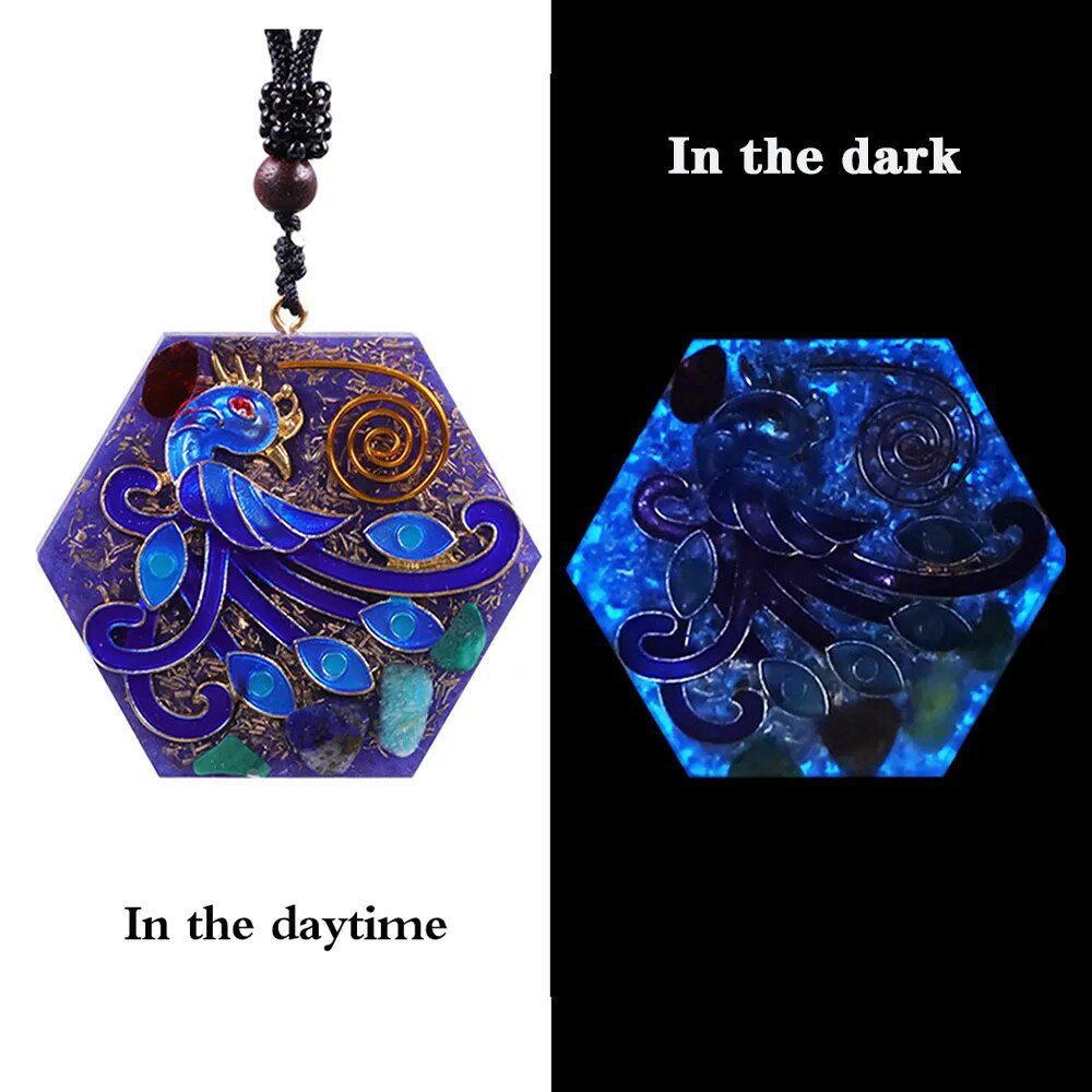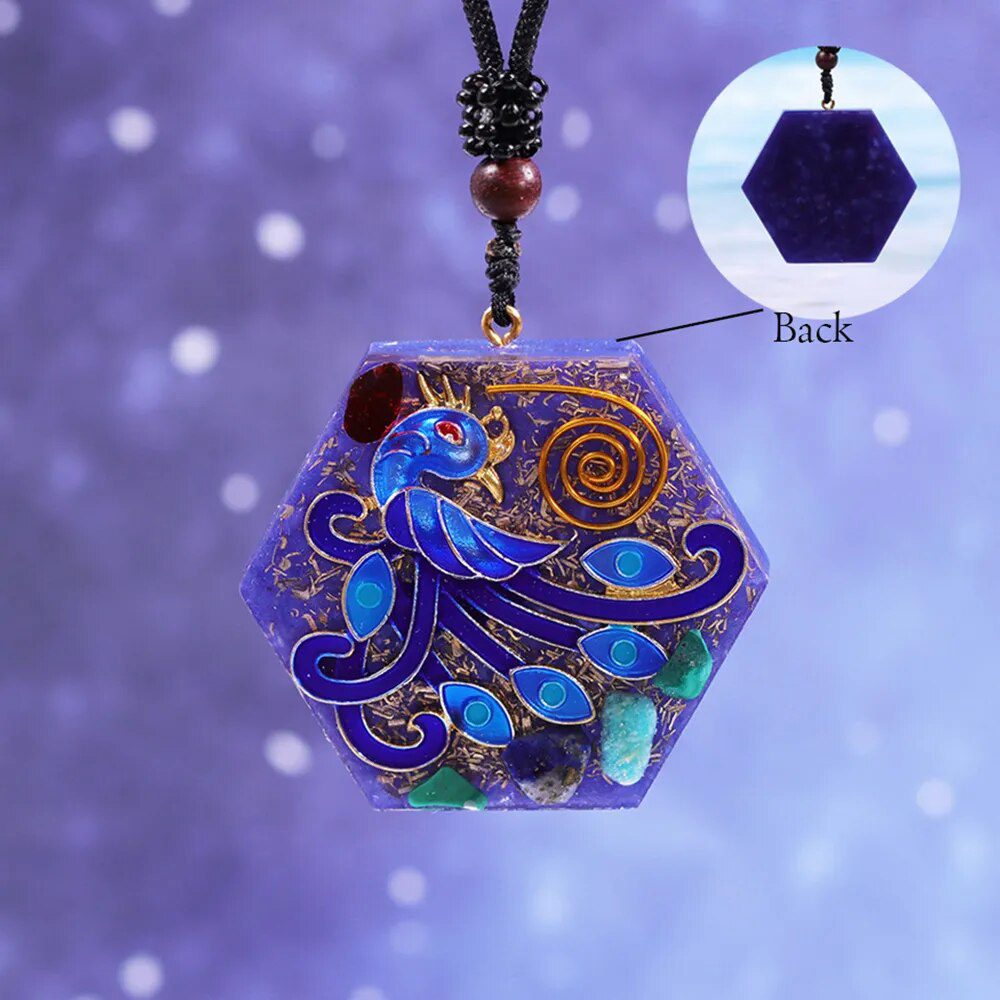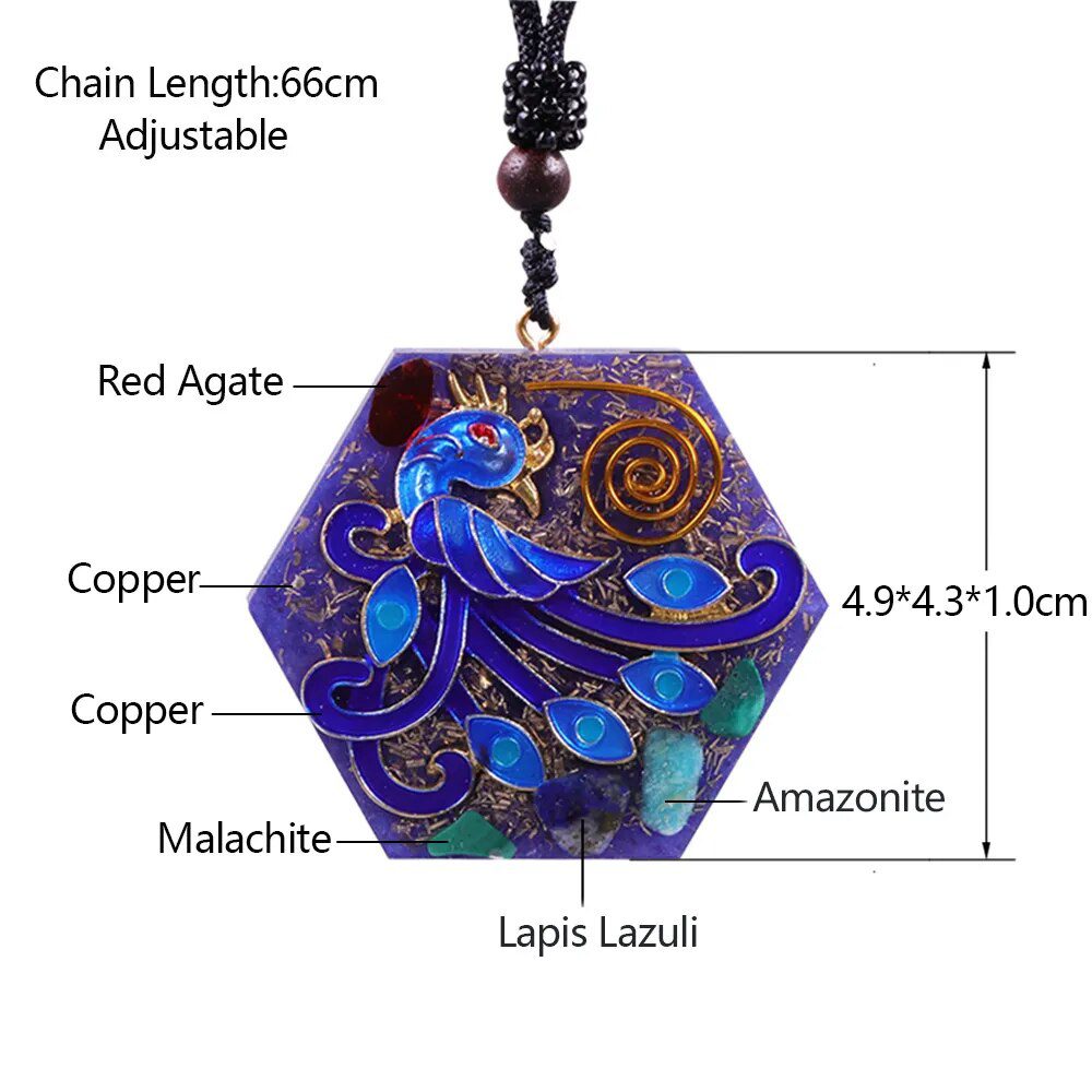 The necklace features an orgone pendant to which phoenix is embedded. The reason for this is because Phoenix in jewelry is said to promote everlasting love and harmonious relationship. In addition, this magical creature brings good luck, harmony, peace, balance, and prosperity.