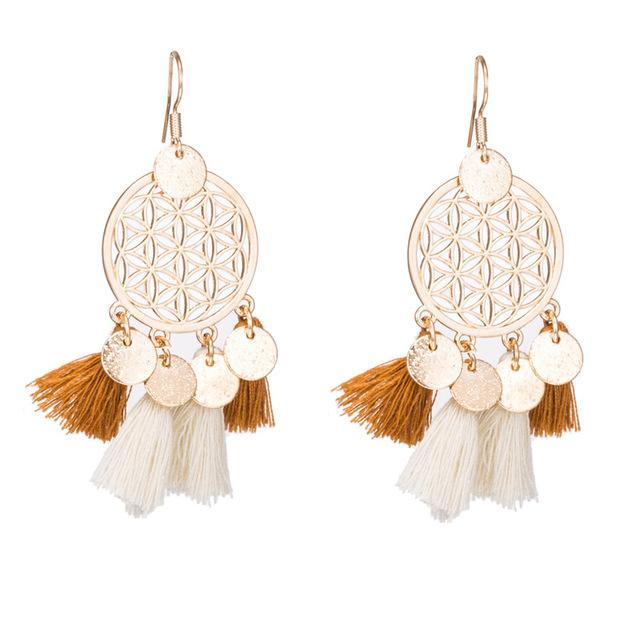 Use this Golden Flower Of Life Tassel Earrings as a conversation piece, an ice break opener, and also as a tool of transformation and divine alchemy.