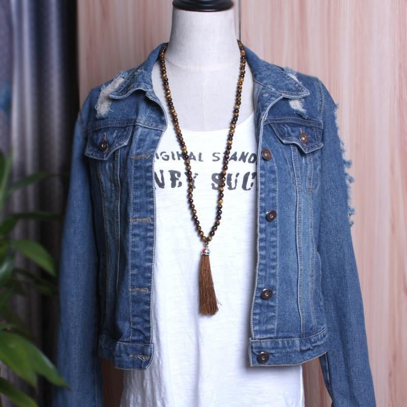 Experience the captivating blend of serenity and strength with our Golden Tranquility Tiger Eye Mala. Handcrafted with care, each bead carries the essence of inner peace and personal power. The warm, golden hues of Tiger Eye gems invite tranquility, grounding you in the present moment as worries dissipate. Embrace your authenticity and tap into your innate wisdom, for this mala serves as a talisman of confidence during life's twists and turns.