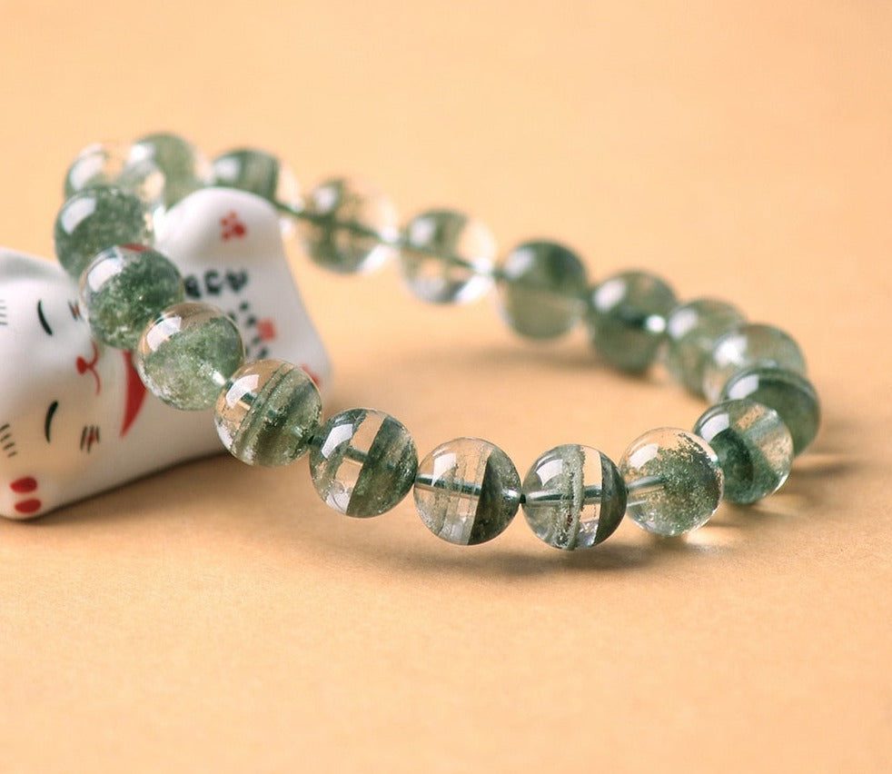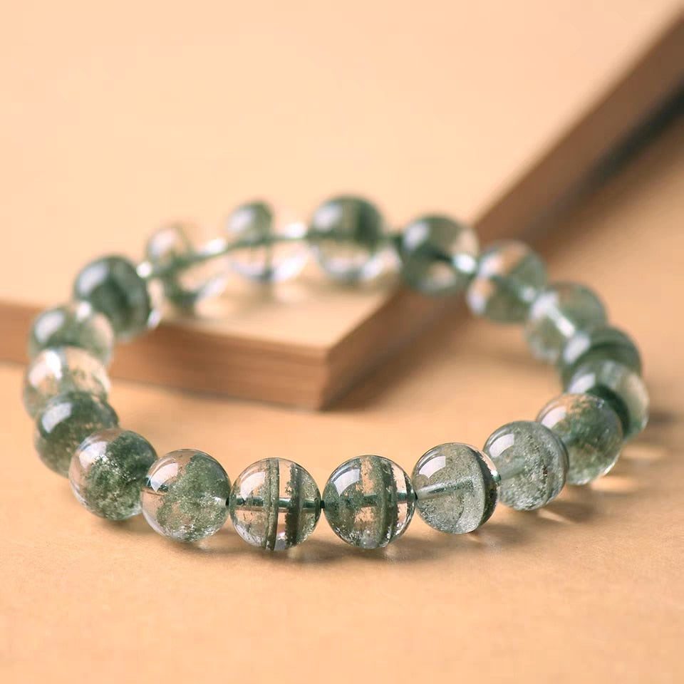 Embrace the ethereal beauty of our Green Ghost-Like Cleanser Bracelet, a captivating piece meticulously crafted from the purity of Clear Quartz.