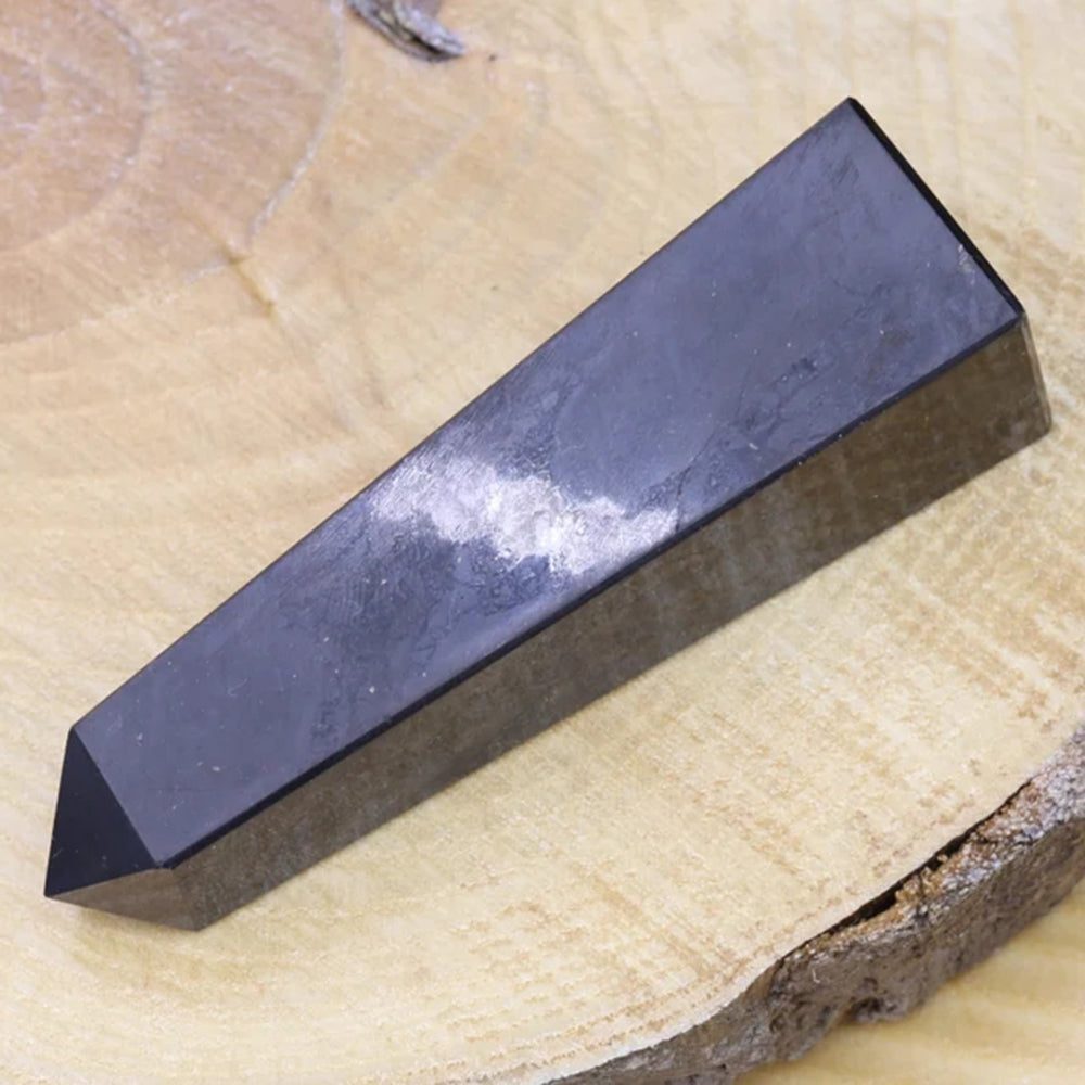 : This wand is expertly fashioned from Shungite, a stone renowned for its protective and purifying qualities. Shungite is believed to neutralize and shield against electromagnetic radiation and promote a sense of calm and balance.