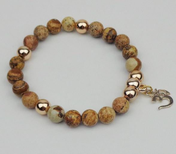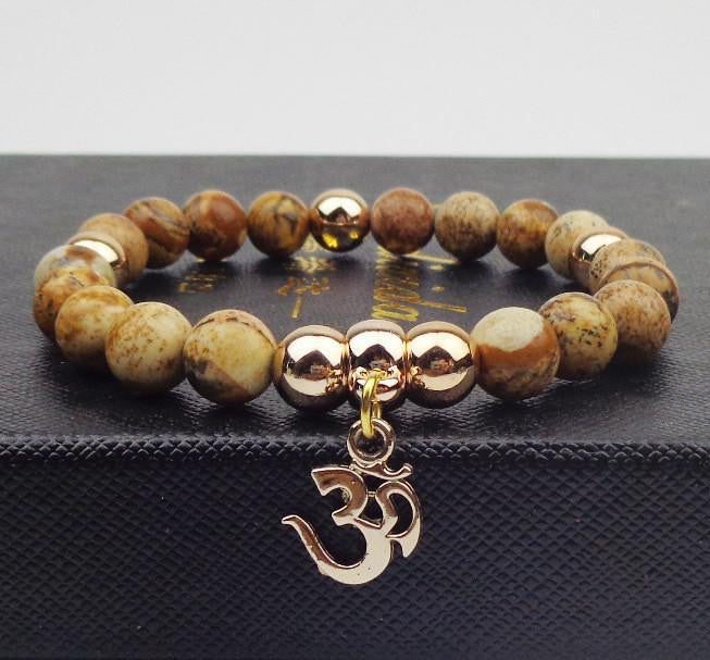 This Immaculate Tibetan OM Natural Jasper Mala Bracelet is handmade with Natural Beads and Jasper...