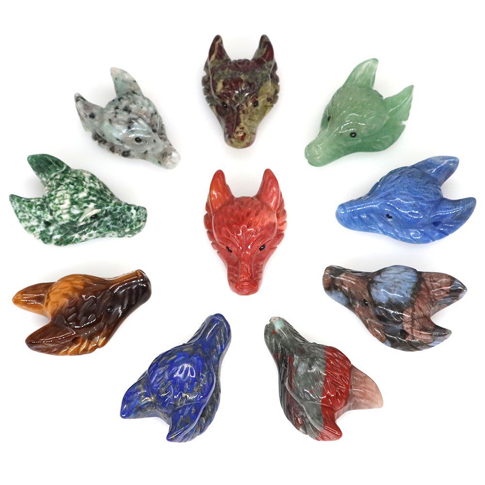 We are offering these new hand carved wolf heads which are absolutely gorgeous and come in different crystal types.