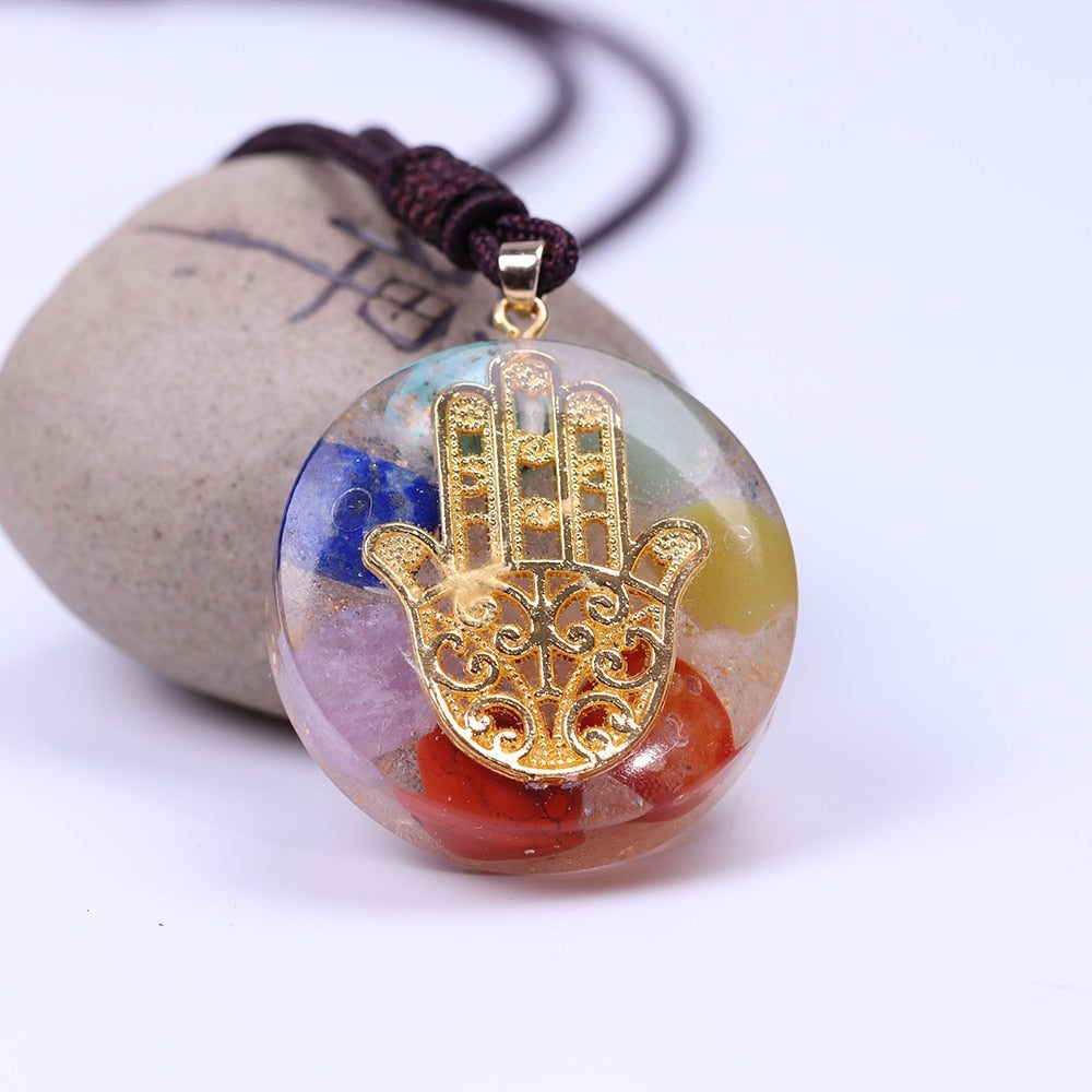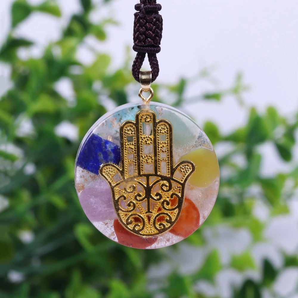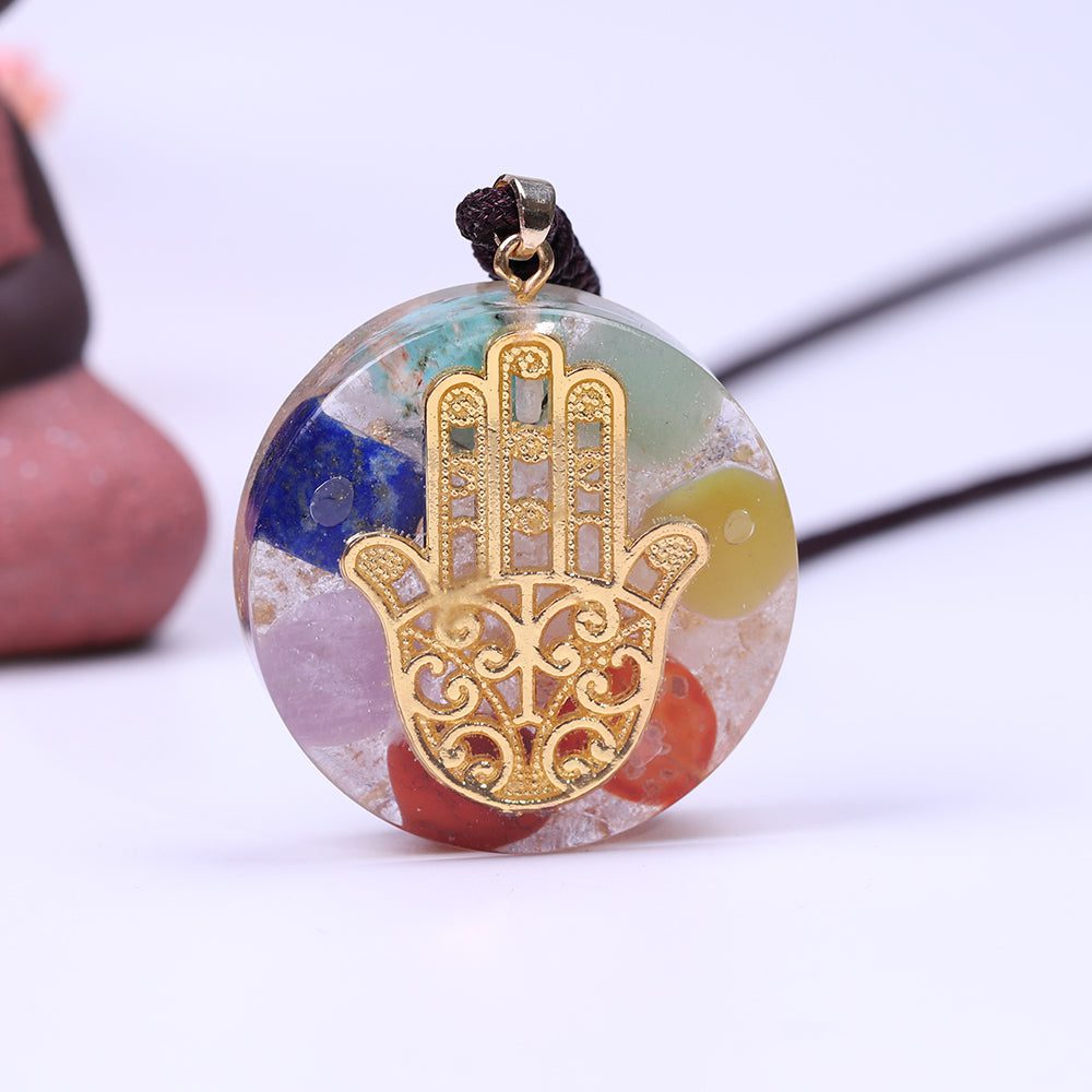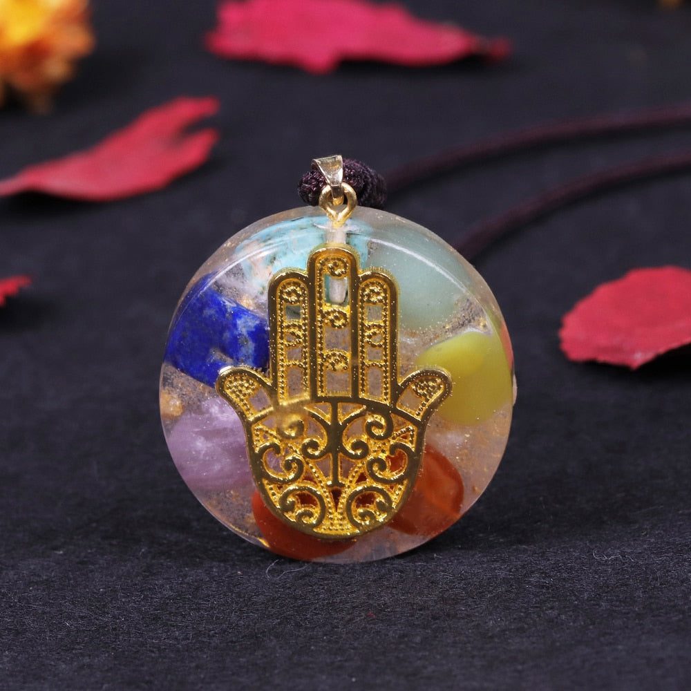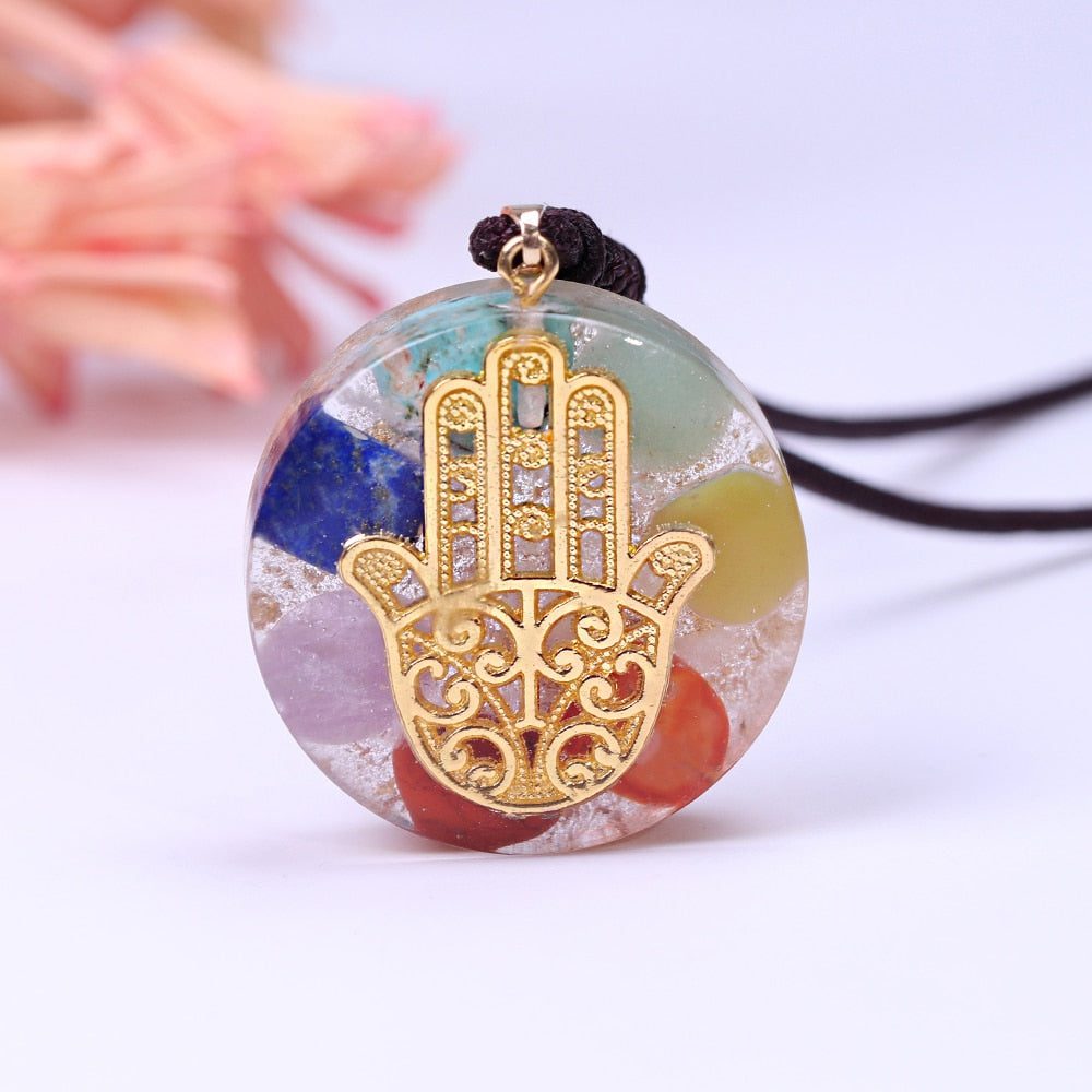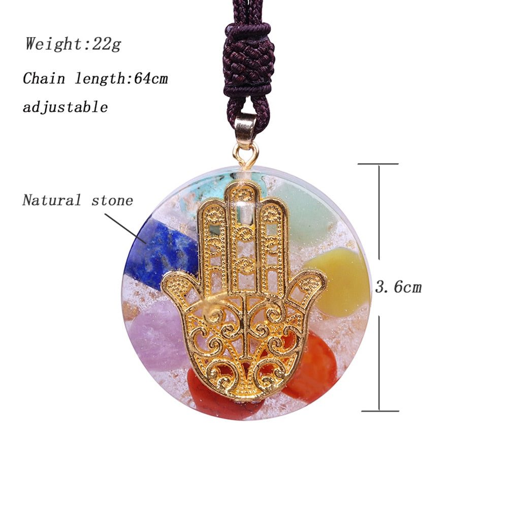 This Hand Of Fatima Orgone Chakra Necklace is a great tool to enhance your spiritual growth and improve your meditation and overall wellness.