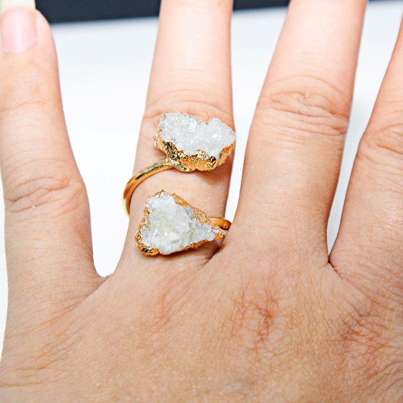 Druzy Quartz was chosen as the ring's centerpiece because it represents the difference between living with fear and anxiety and having the courage and ability to take the next step toward your goals and dreams.So, if you're struggling to move forward or adjusting to life's many changes, this ring is bound to help you.