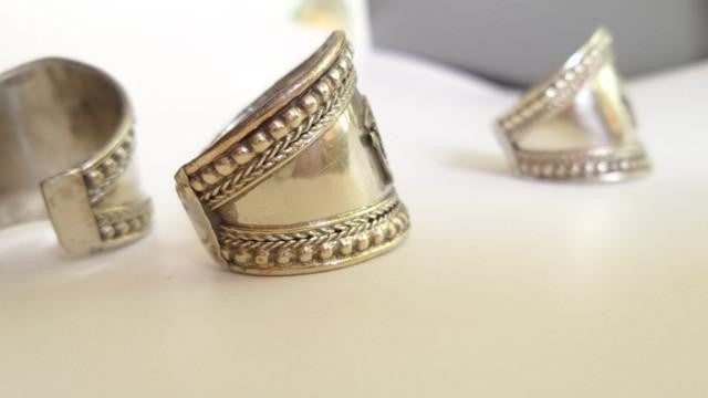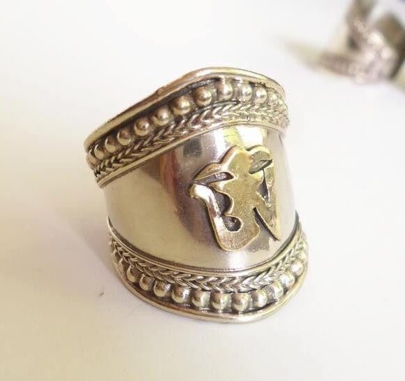 Using old metal making,one of the most well known symbols in the world is exquisitely carved on a wide open Tibetan Silver band with