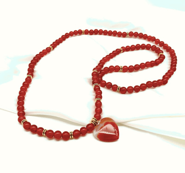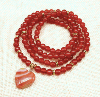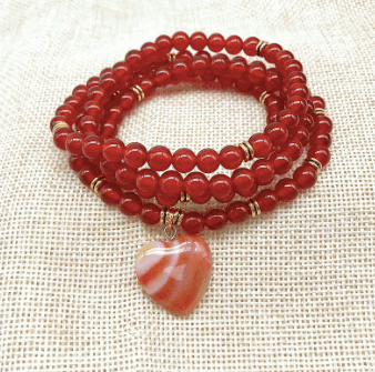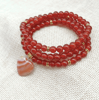 You can wear this Heart of Bliss Carnelian Mala around your neck or wrap it around the wrist to create a beautiful stacked bracelet!