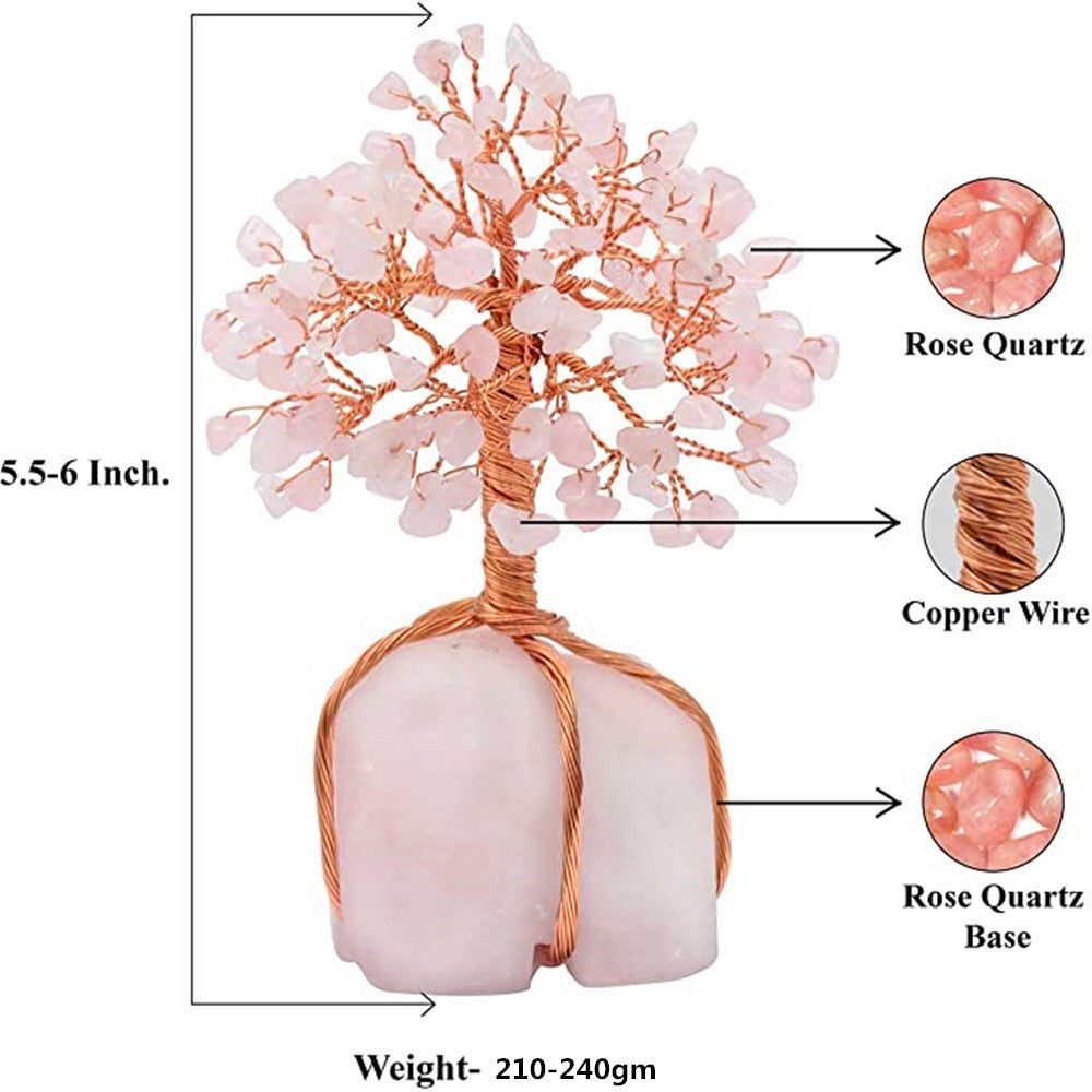 This tree is made of Rose Quartz, a stone that cleanses and opens the heart on all levels, fostering feelings of love, self-love, friendship, and peace. It carries a feminine energy of peace, harmony, and compassion, as well as reducing stress. Rose Quartz properties can also provide you with the wisdom you need to deepen your connection with your partner.