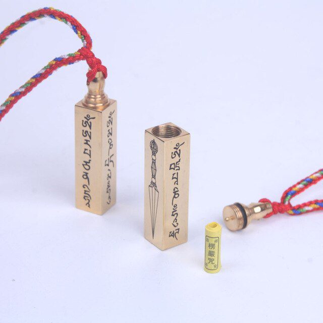 opens to a concealed inner space, and is traditionally used by Tibetan Buddhists to hold a picture of their favorite deity or Lama, a folded up scroll of sacred mantras, special herbs or sacred relics.