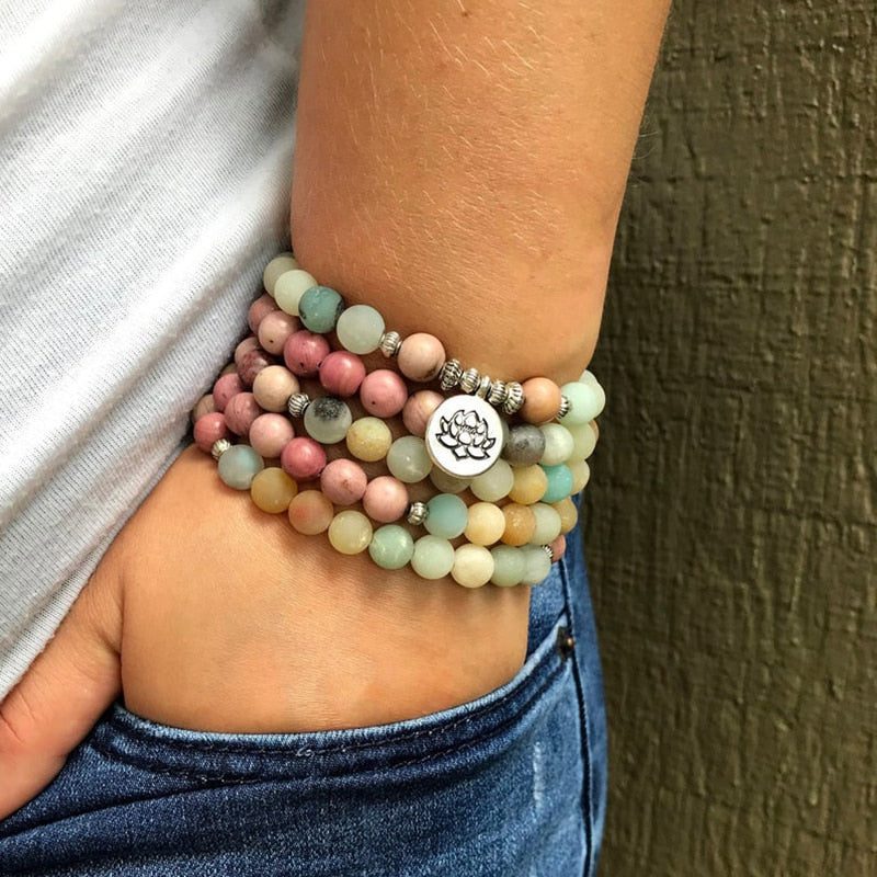 Embark on a journey of self-love with this 108 Hopeful Heart mala threaded through your fingers.