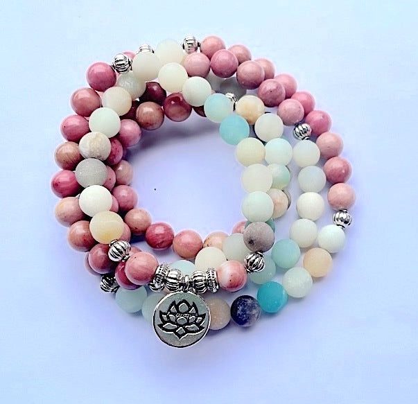 Get your own Hopeful Heart Rhodochrosite & Amazonite 108 Mala to remind yourself that you are capable of creating the life you want and deserve.
