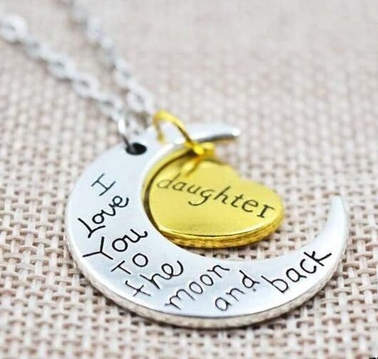 It is a wonderful gift for that special person in your life. A Hanging love letter where it can say anything your heart desires. From a classic chain link necklace is a heart-shaped pendant perfectly paired with a separate crescent-moon. The heart-shaped pendant is dedicated for your loved one and the half-moon shape is beautifully engraved with "I love you to the moon and back".