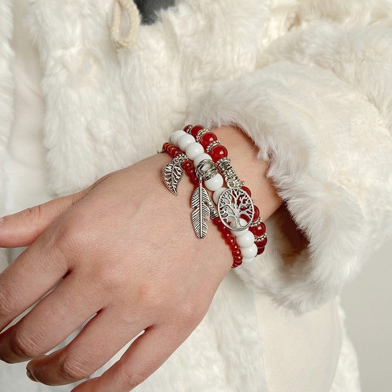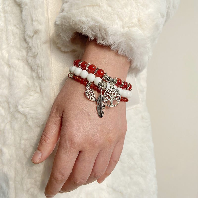 Find the power to change your life within.This captivating Ice and Fire Victory Bracelet Trio features fiery red agate,meticulously chosen by our artisans for its beauty and empowering energy.