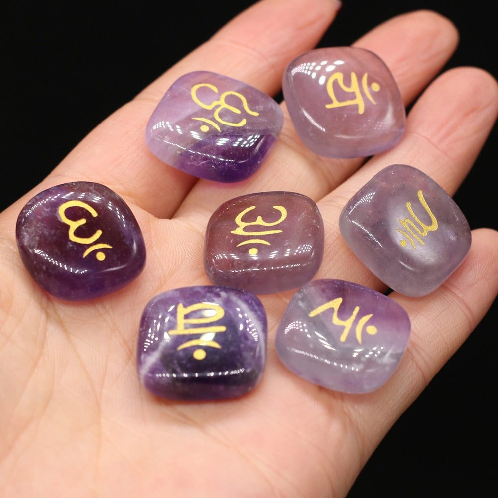 Amethyst symbolizes the crown chakra and supports you in having a divine connection that provides you higher wisdom and intuition, while runes have otherworldly abilities too.