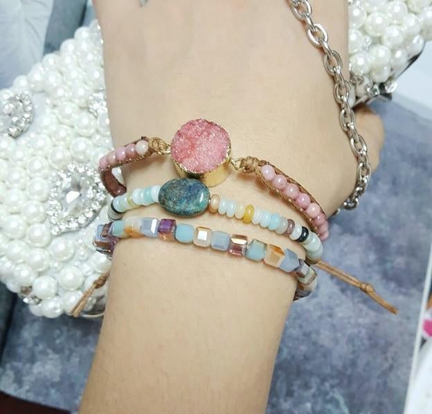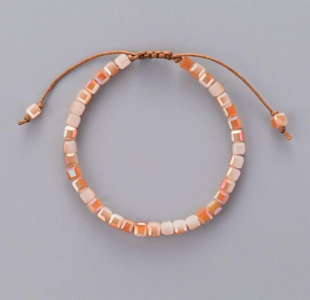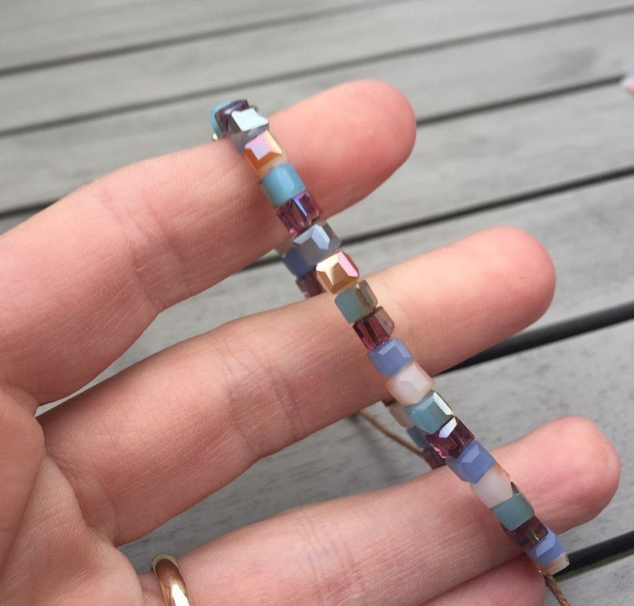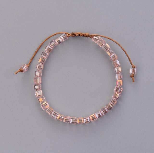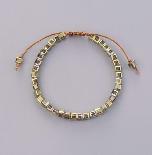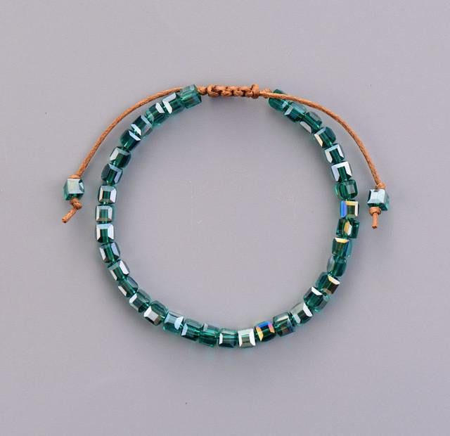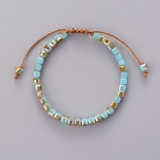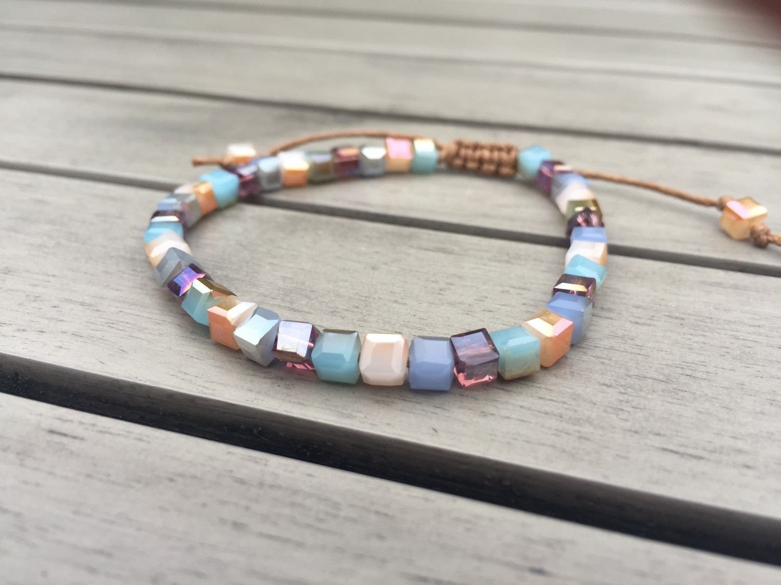These new fresh friendship bracelets are handmade colorful iridescent crystals that are super easy to throw on and go with almost anything! The mix of colors of the beautiful crystals add a trend-setting touch to your wardrobe and the metallic reflective finish catches the light beautifully and adds a touch of glamour.