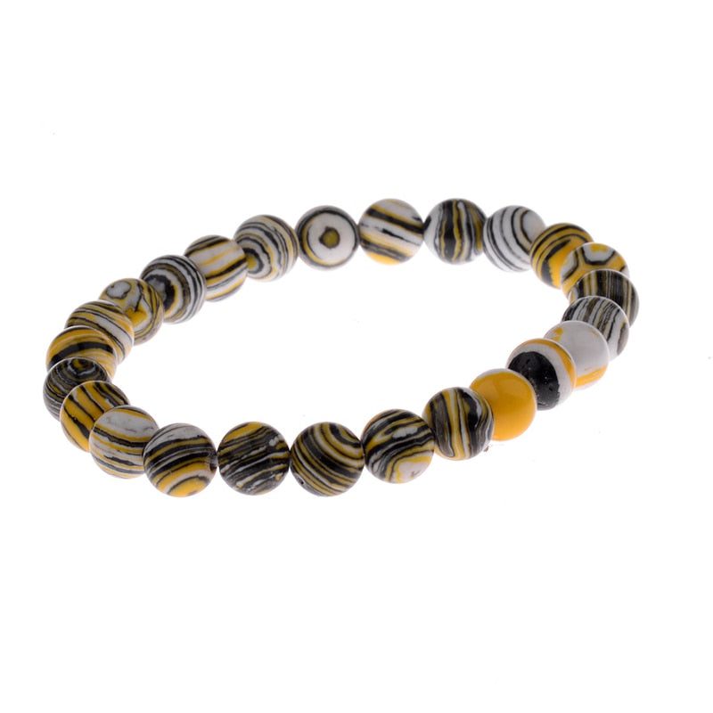 Our artisans created these bracelets in three different colors: colorful, yellow, and black and white. But keep in mind that these beads are made of malachite, a protective stone that aids in the elimination of negative energies.