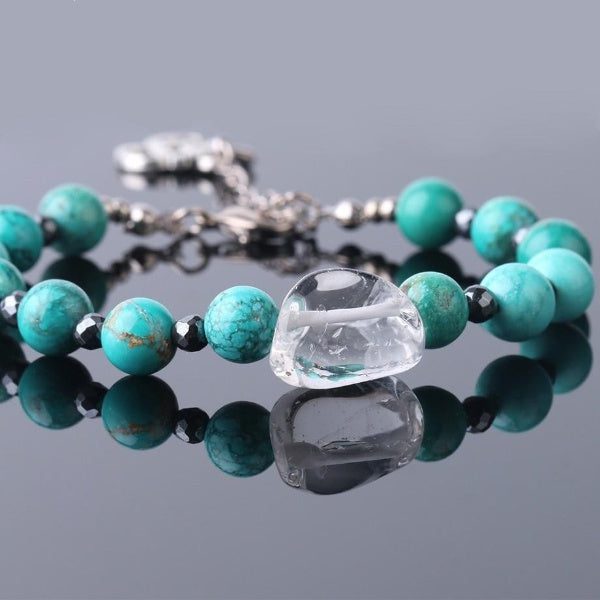 Turquoise, the captivating sea-green stone of the ancients, represents wisdom, tranquility, protection, good fortune, and hope. Ancient peoples believed in its profound power to protect, as well as its tranquil energy and its association with enduring love. Likewise, contemporary crystal experts celebrate it for its representation of wisdom, tranquility, and protection.
