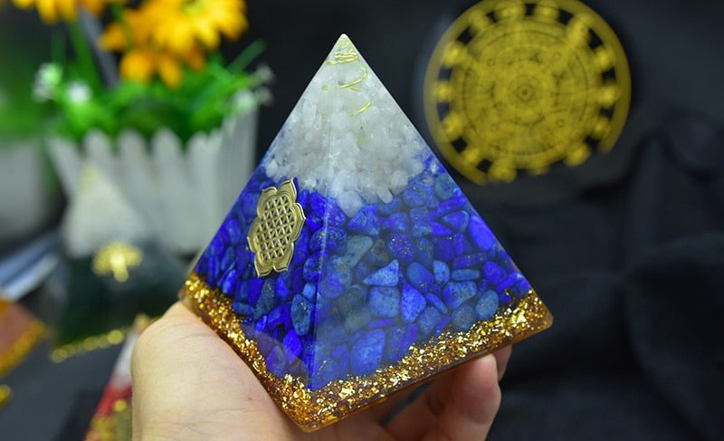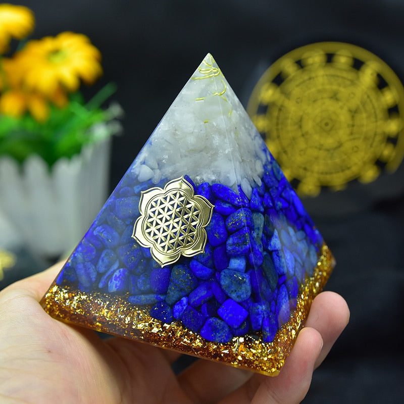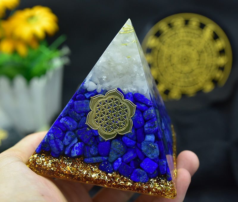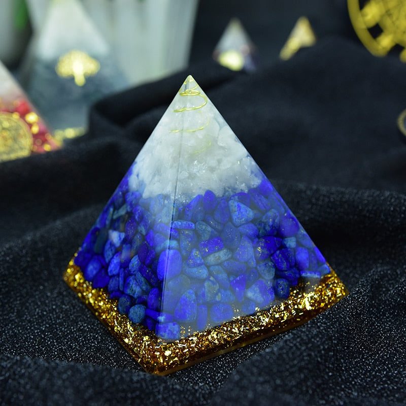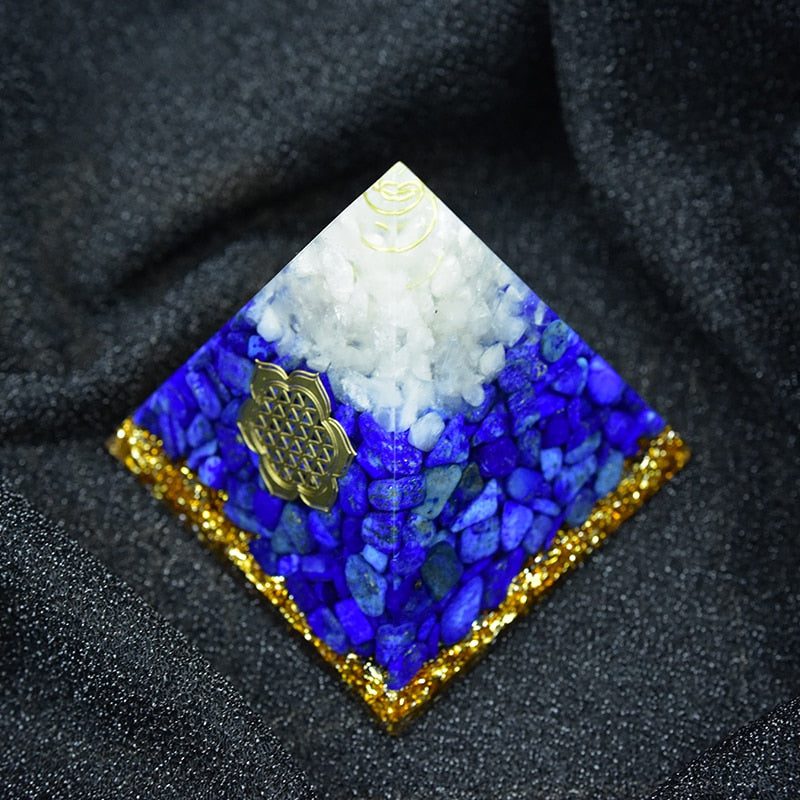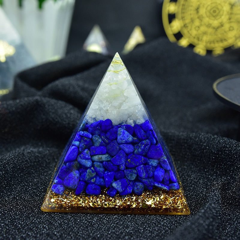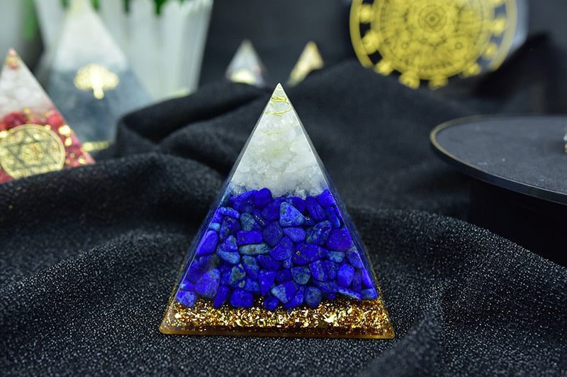 Lapis Lazuli and White Crystal Healing Orgone Pyramid