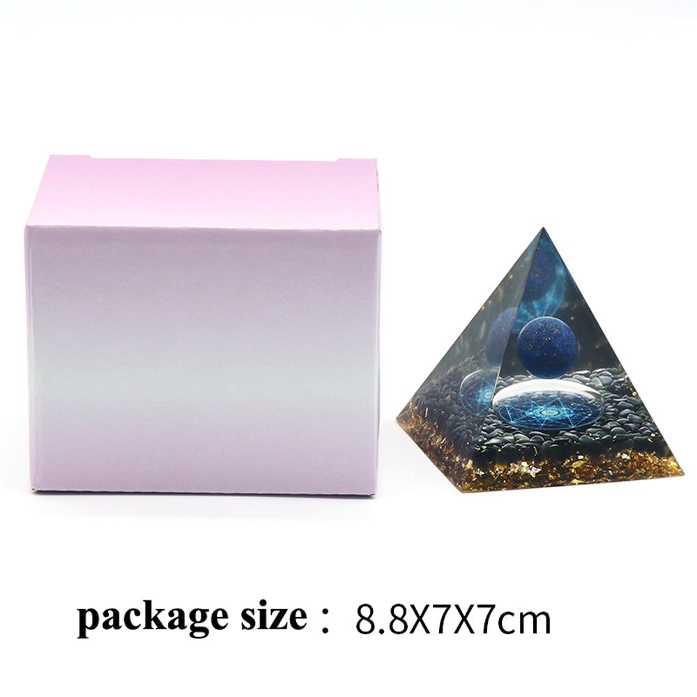 This pyramid contains the relaxing Lapis Lazuli, neutralizing Gravel stone and attracting Gold leaf that is made of high-quality materials. It is carefully chosen by our creative artisans to ensure the quality of this product.
