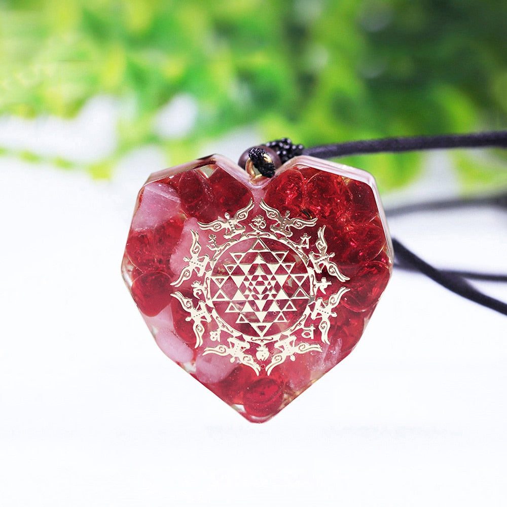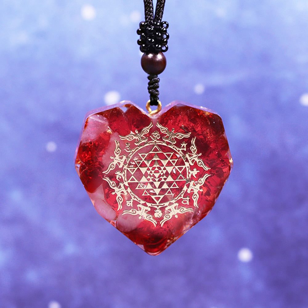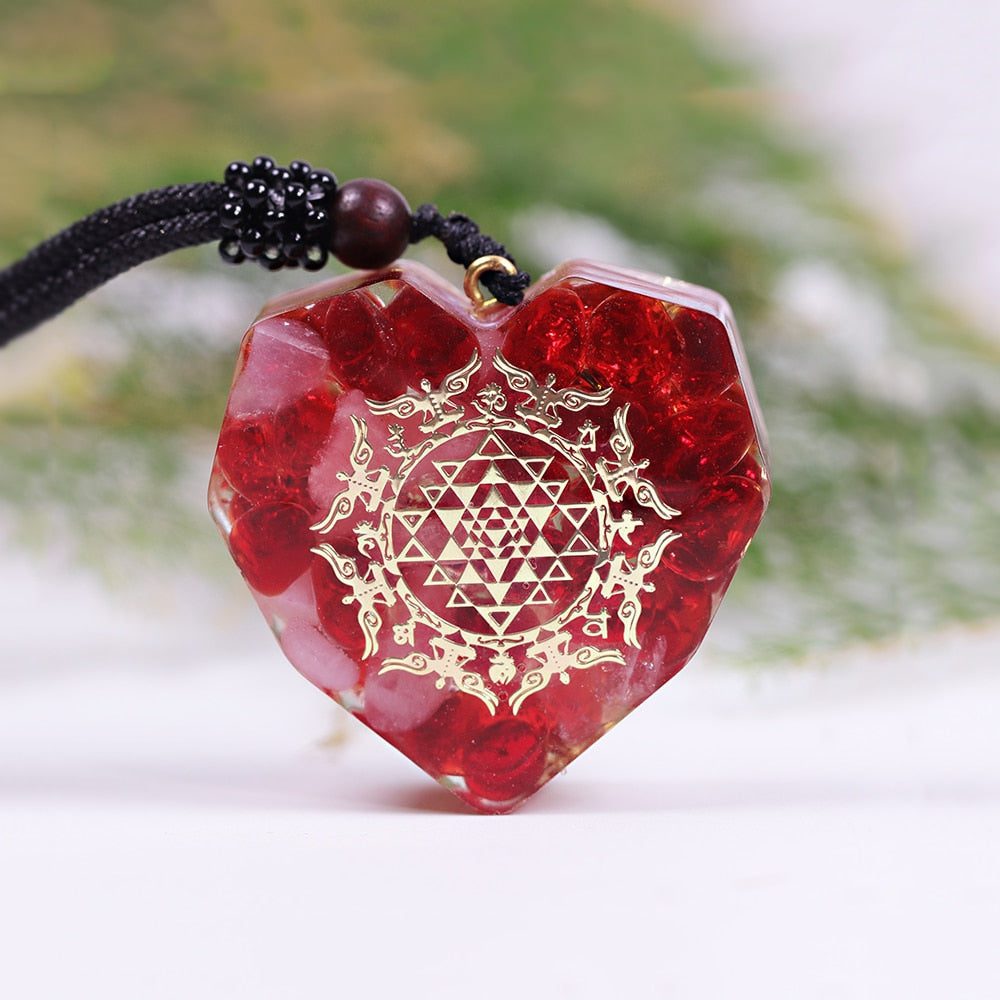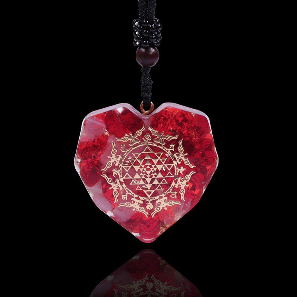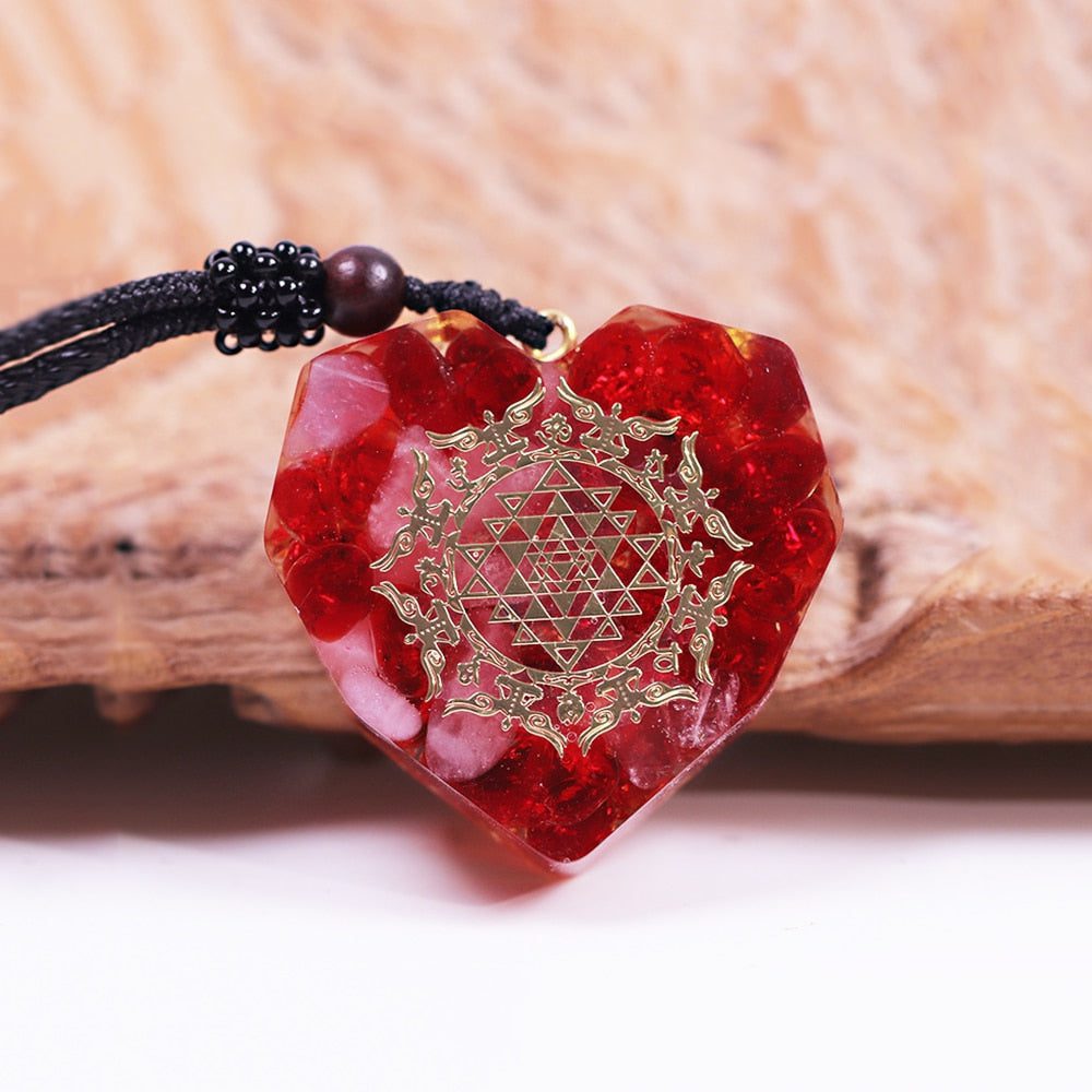 This red agate crystal orgonite pendant is an elegant way to show your love. The heart-shaped design gives it a special touch, and the red agate crystals symbolize deep passion.