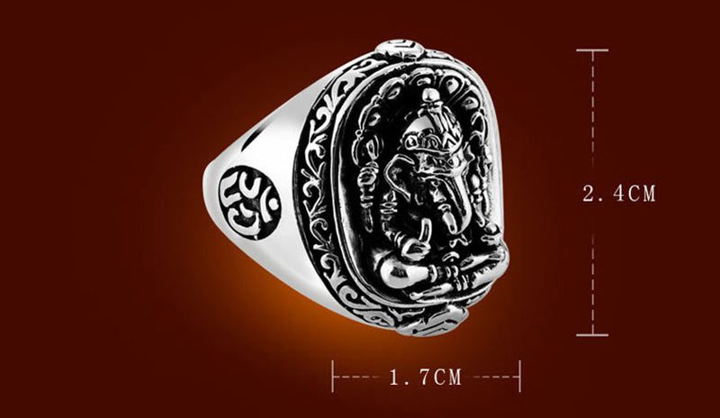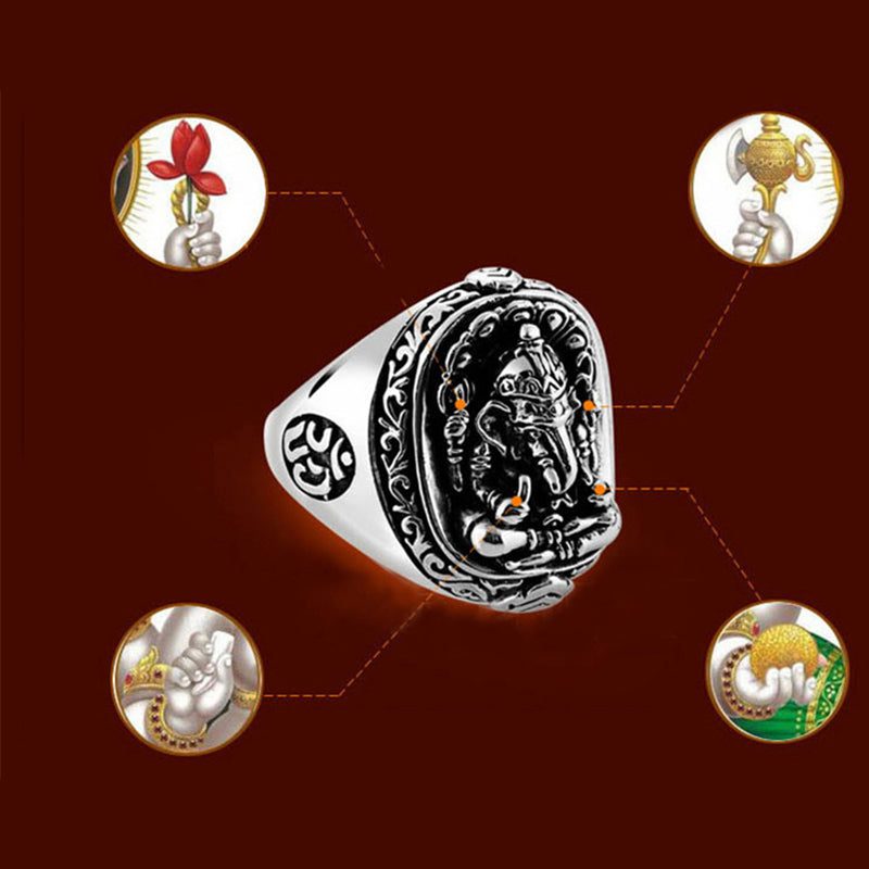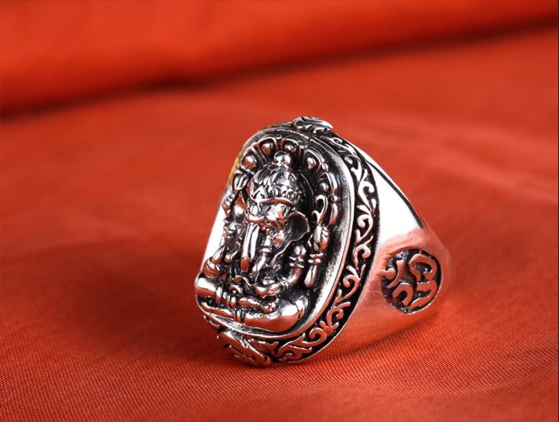 The elephant head denotes wisdom and its trunk represents Om, the sound symbol of cosmic reality.