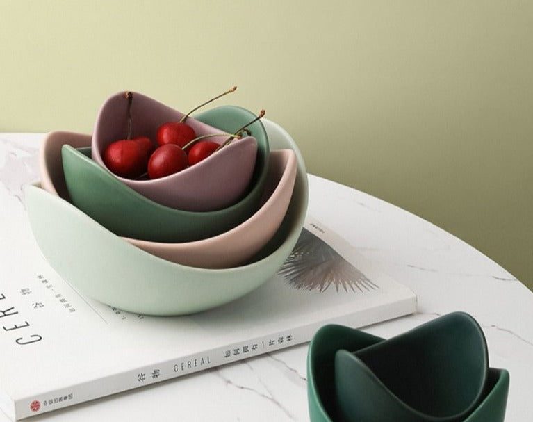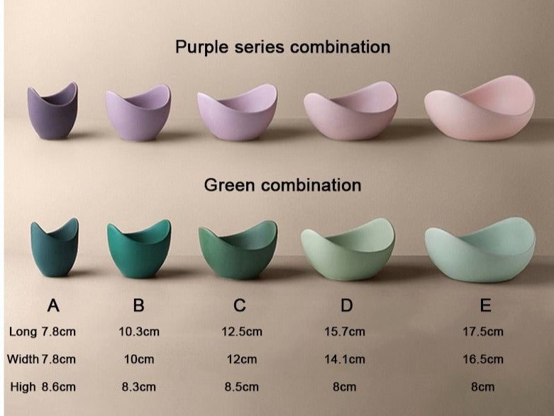 These Lotus Bowls are the perfect dish set for your home. They feature beautiful pastel colors of pink and green. The irregular bowl shapes complement and perfectly fit within each other. Enjoy buying and choosing between pink and green colorways.
