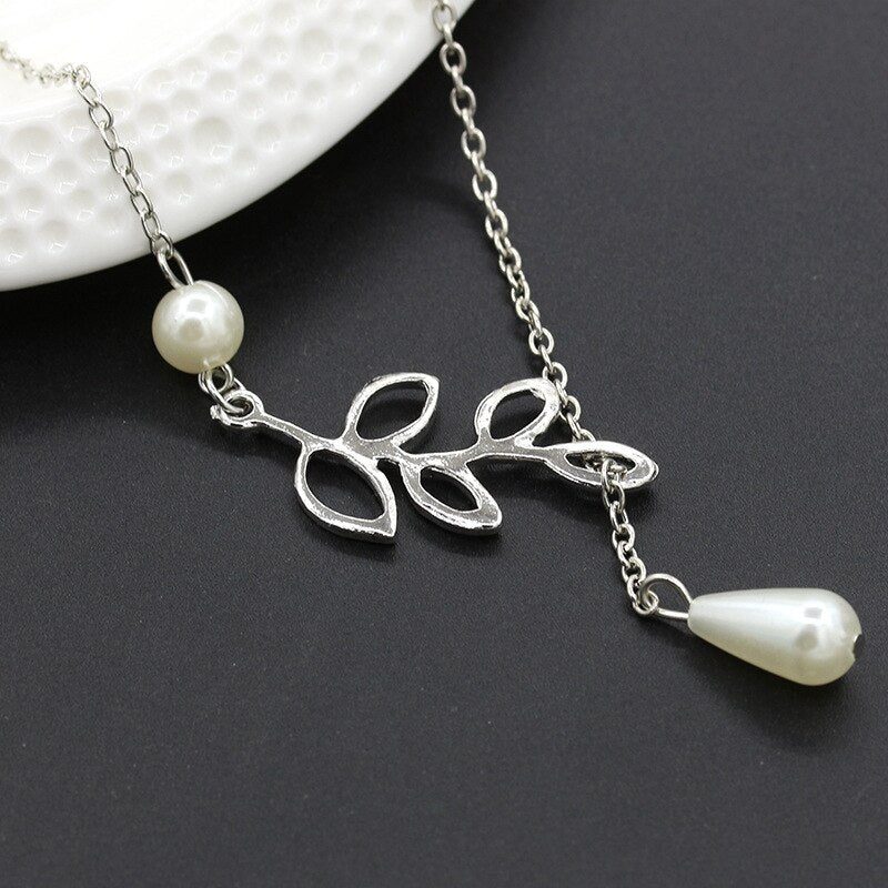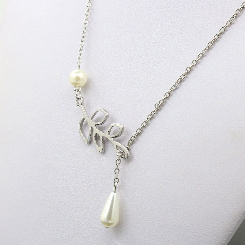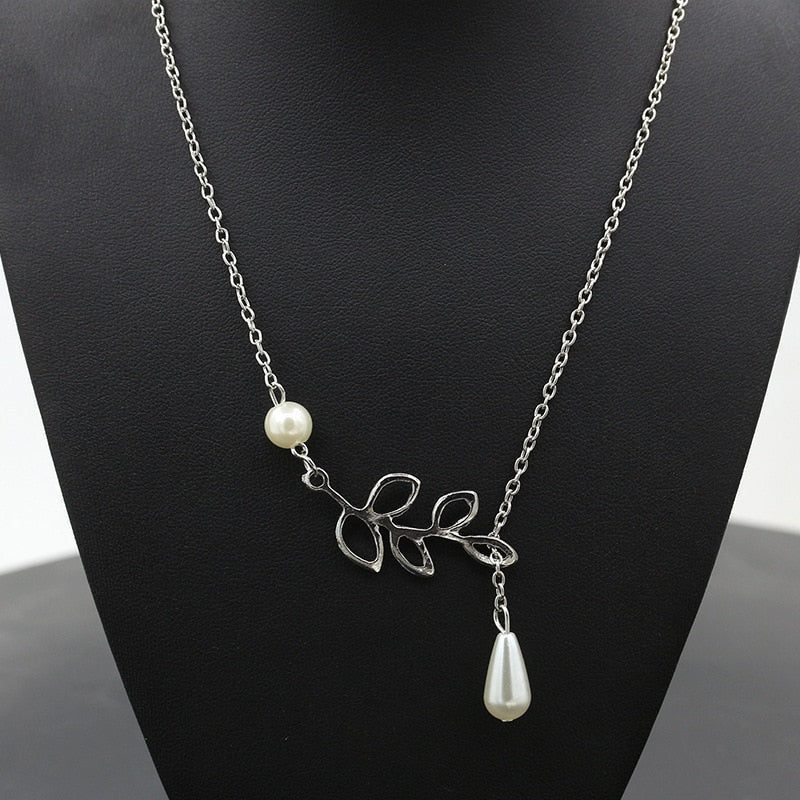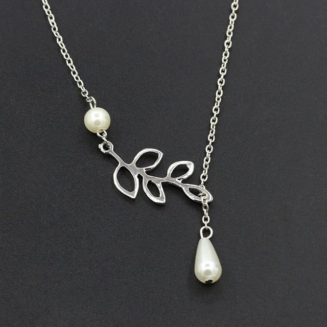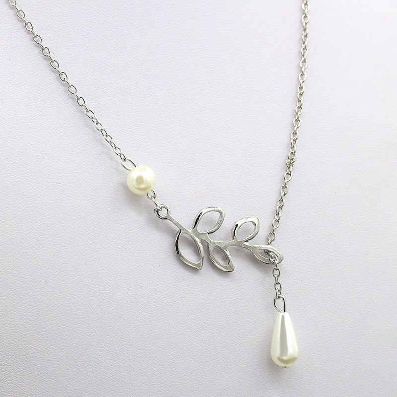Lovely Leaves Lariat Pearl Necklace
