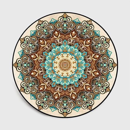 A symbol of unity and completeness, this Mandala Round Carpet lends an artful appeal to any space. A centered medallion design, highlighted by a border and woven to accent the natural variations in the fabric.