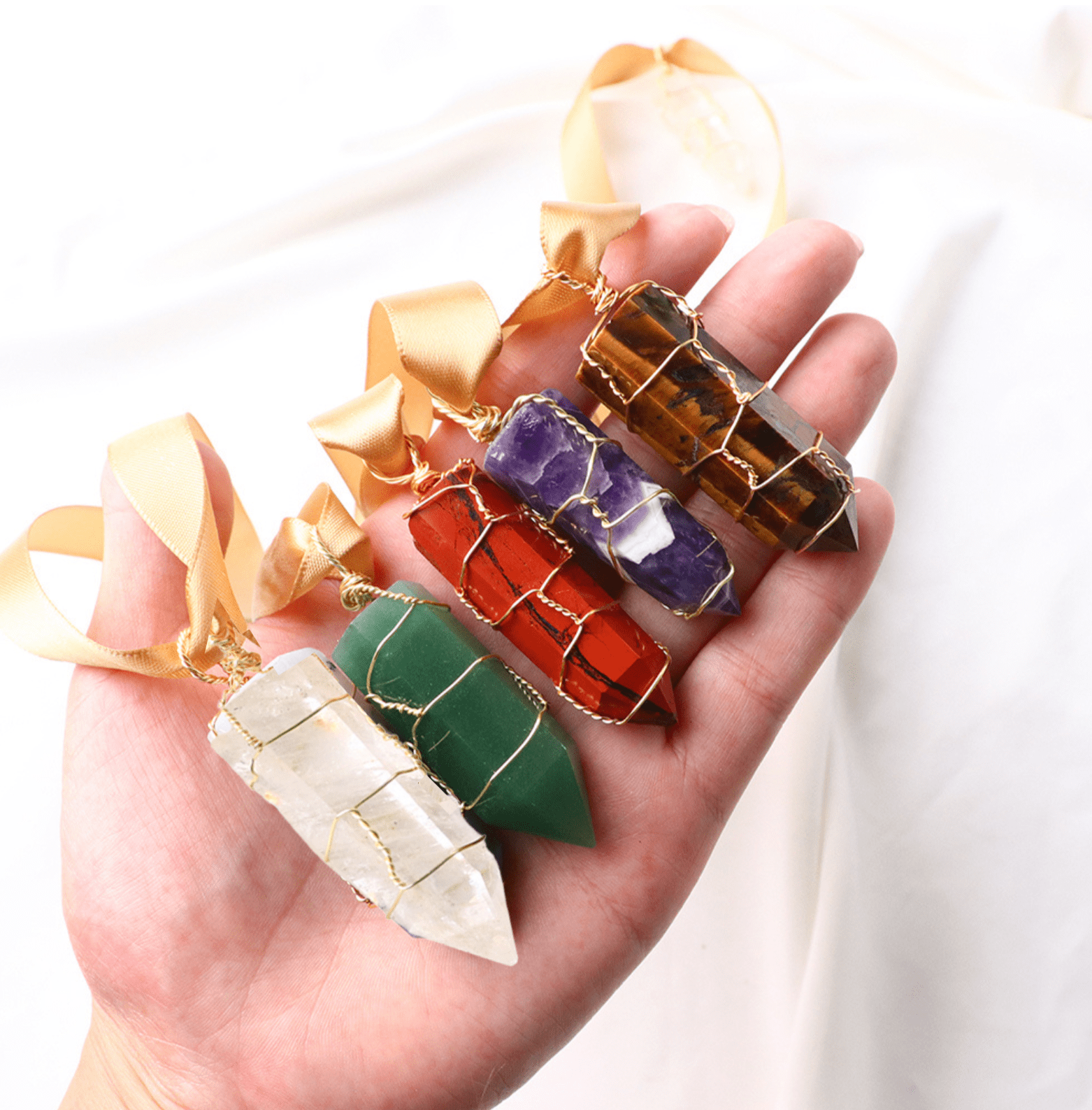 Raise your spirits with these five power crystals, you'll be decked out in sparkle while amplifying the healing, strength protection they bring with them. specially chosen to amplify healing, protection, and strong vibrations. These crystals are desirable addition during the holiday season. See your shiny Christmas tree decorated with Clear Quartz, Tiger's eye, Green Aventurine and Red Jasper.