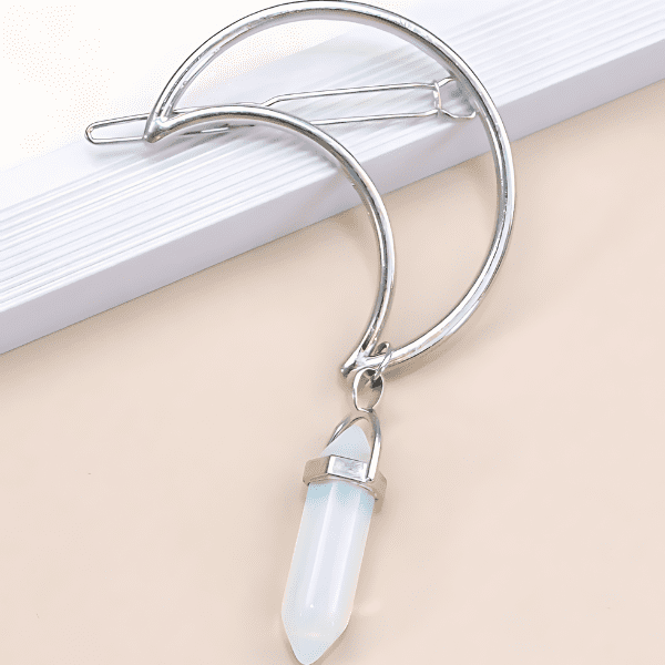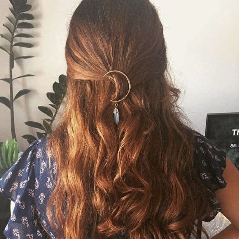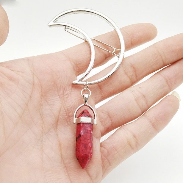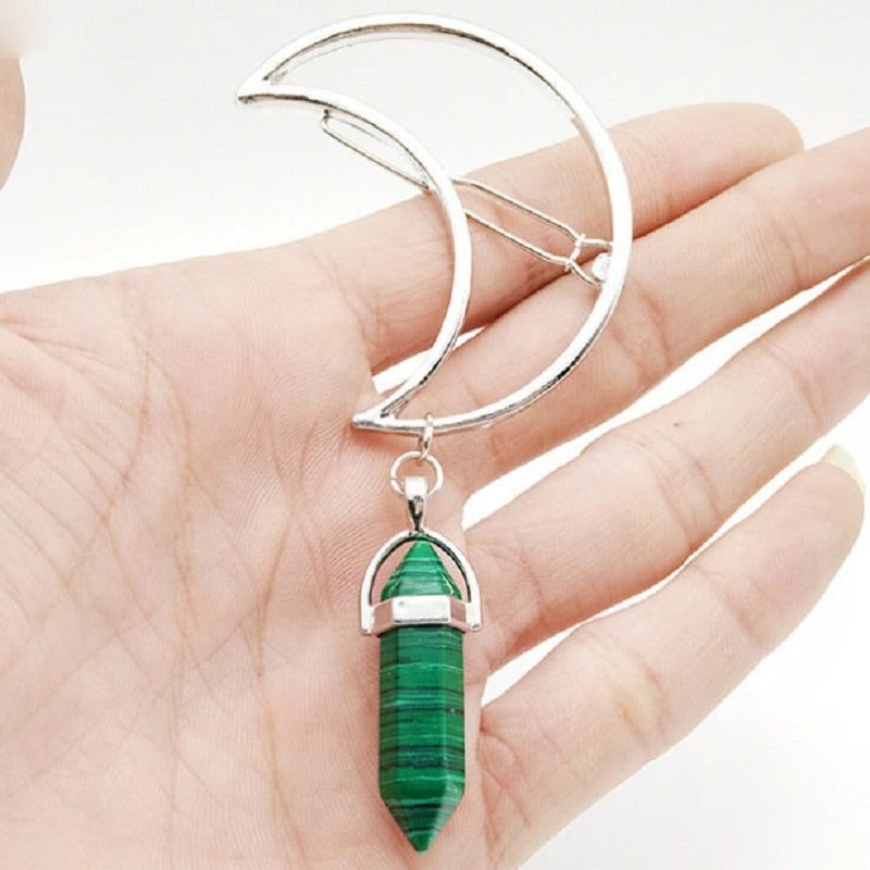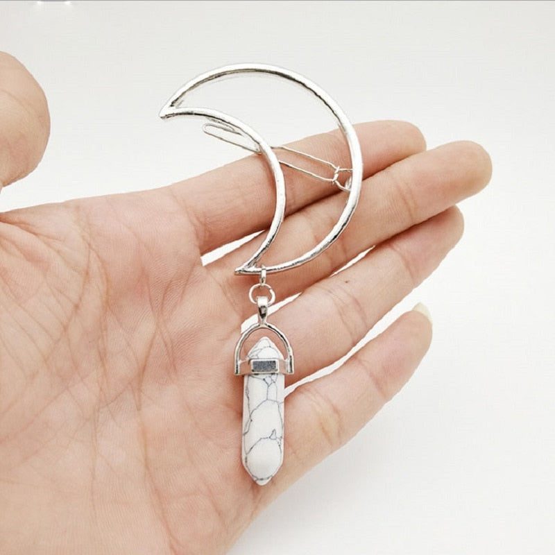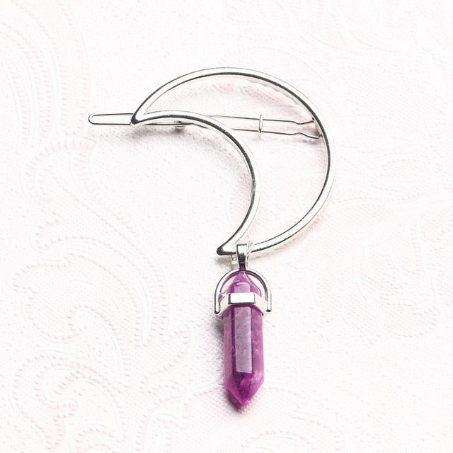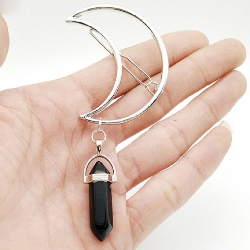 Show your spiritual flare wherever you go and reap the benefits from the natural stone energy housed in this Beautiful Boho Crescent Moon Hair Clip. The perfect complement to your look and gift to those in need of a natural boost.