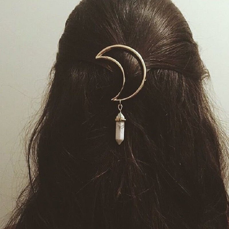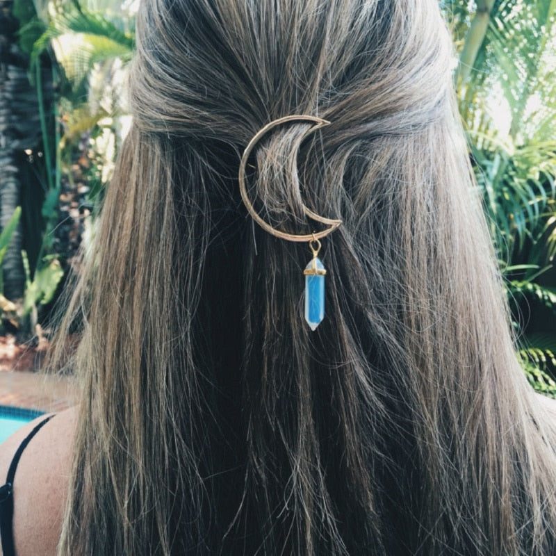 This Beautiful Boho Crescent Moon Hair Clip is all you need to help you balance your chakras. The word crescent derives from the Latin word "crescere" which means to grow.