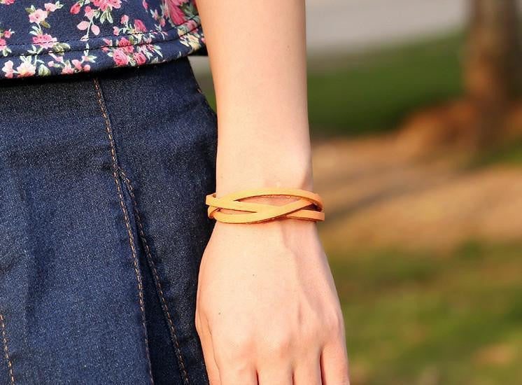 Its always been a challenge to find that perfect brown bracelet. This Multilayer Woven Leather Snap Button Bracelet gives you an array of choices of different shades of brown to match your outfit.