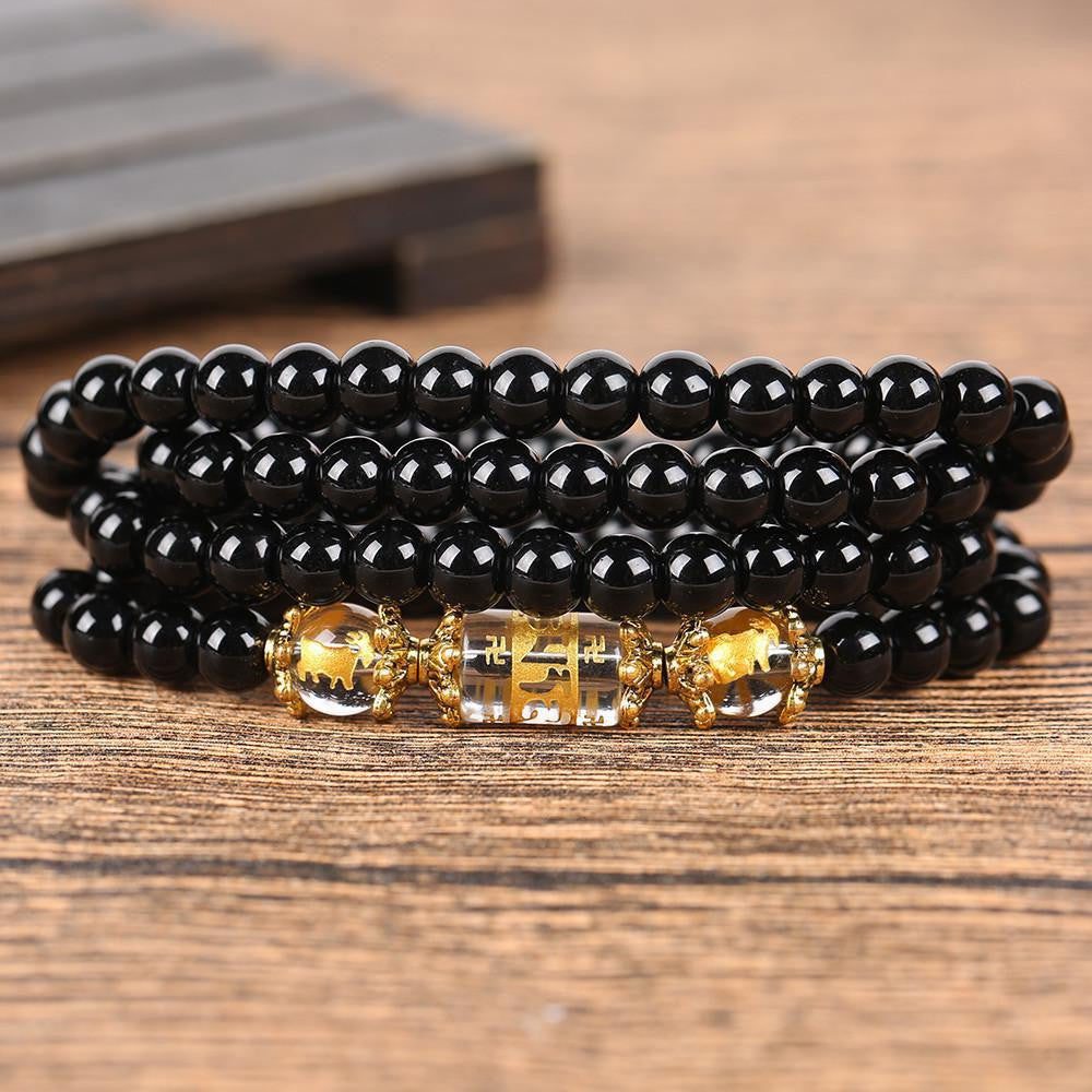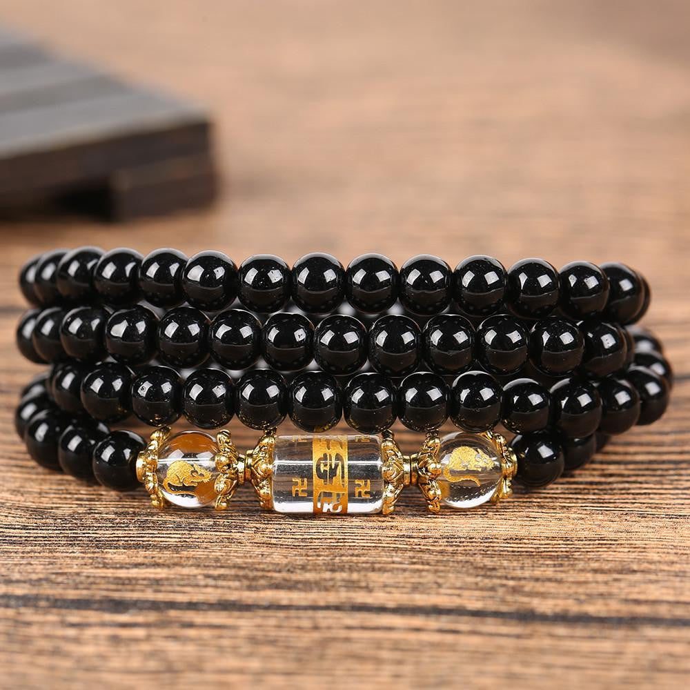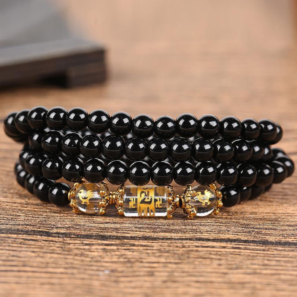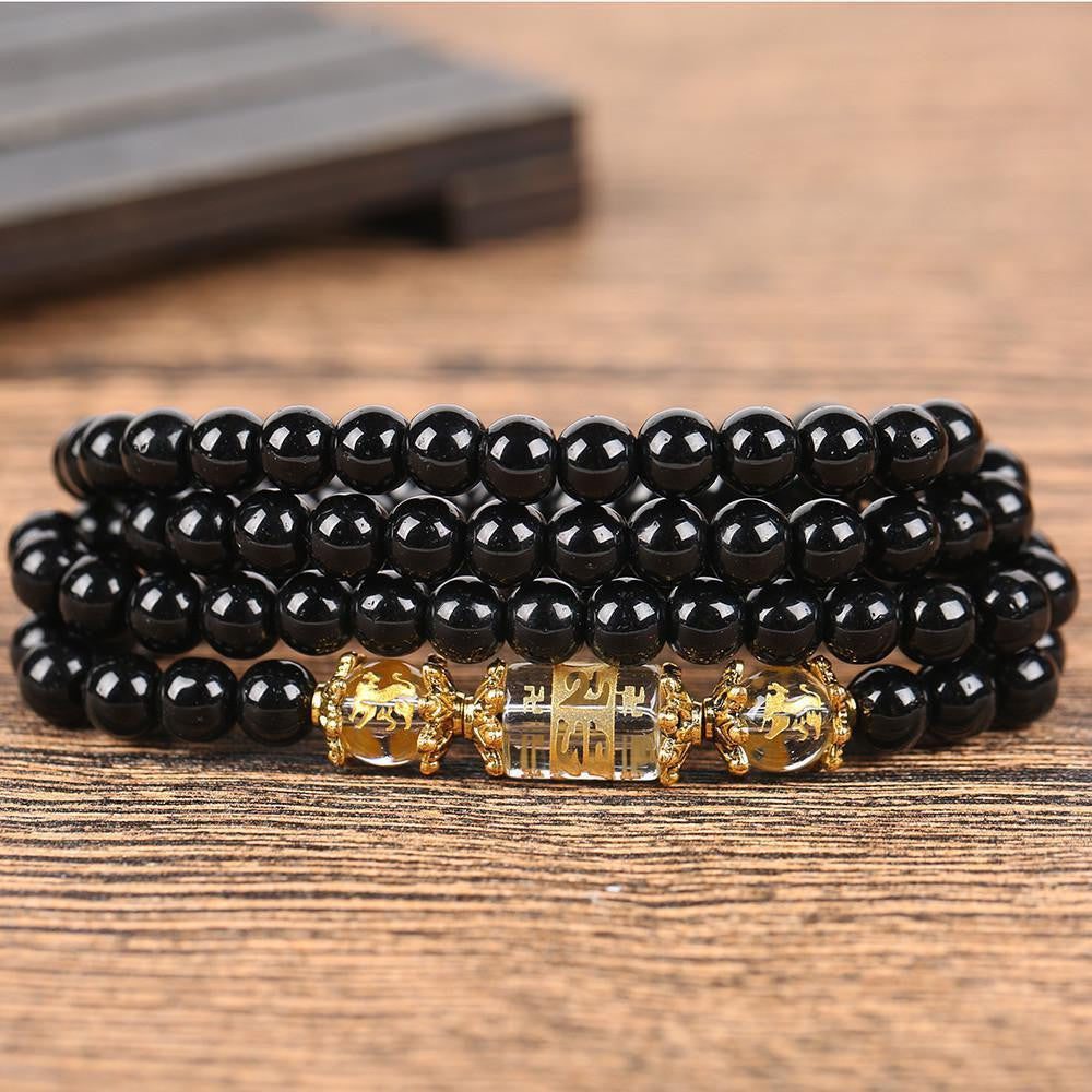 The traditional six-word mantra engraved on the crystal focal bead makes it very meaningful. It is used to purify in a person centers of pride, jealousy, desire, ignorance/prejudice, greed, and hatred. It focuses on the progression of: