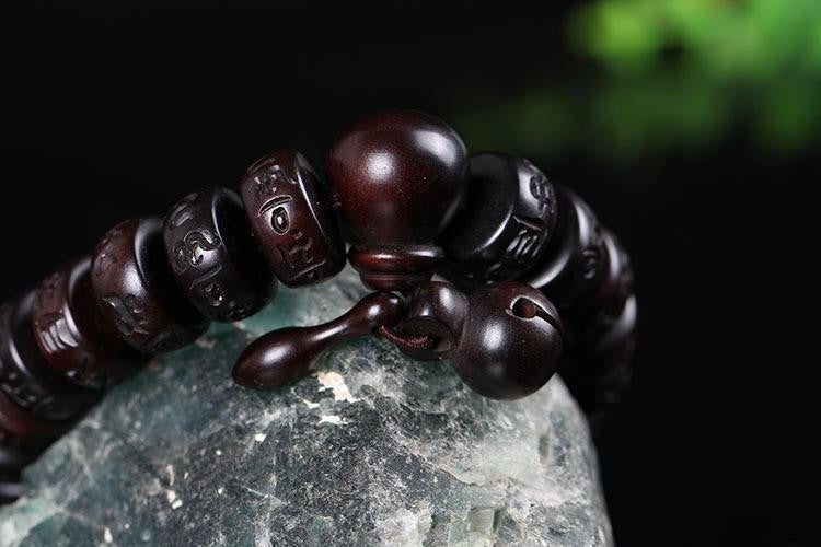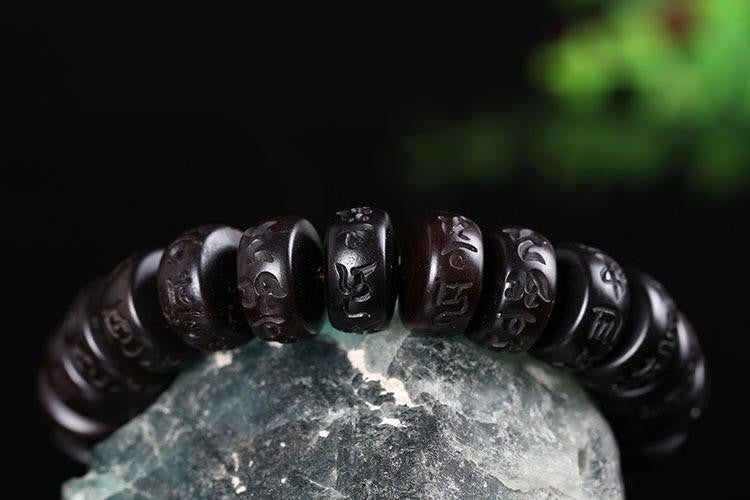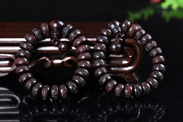 Om mani padme hum Real peach wood beads with a distinct fragrant smell.