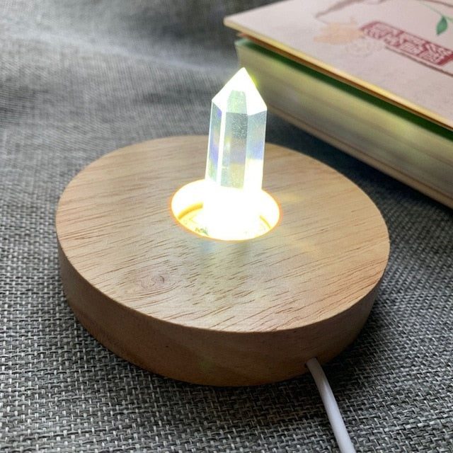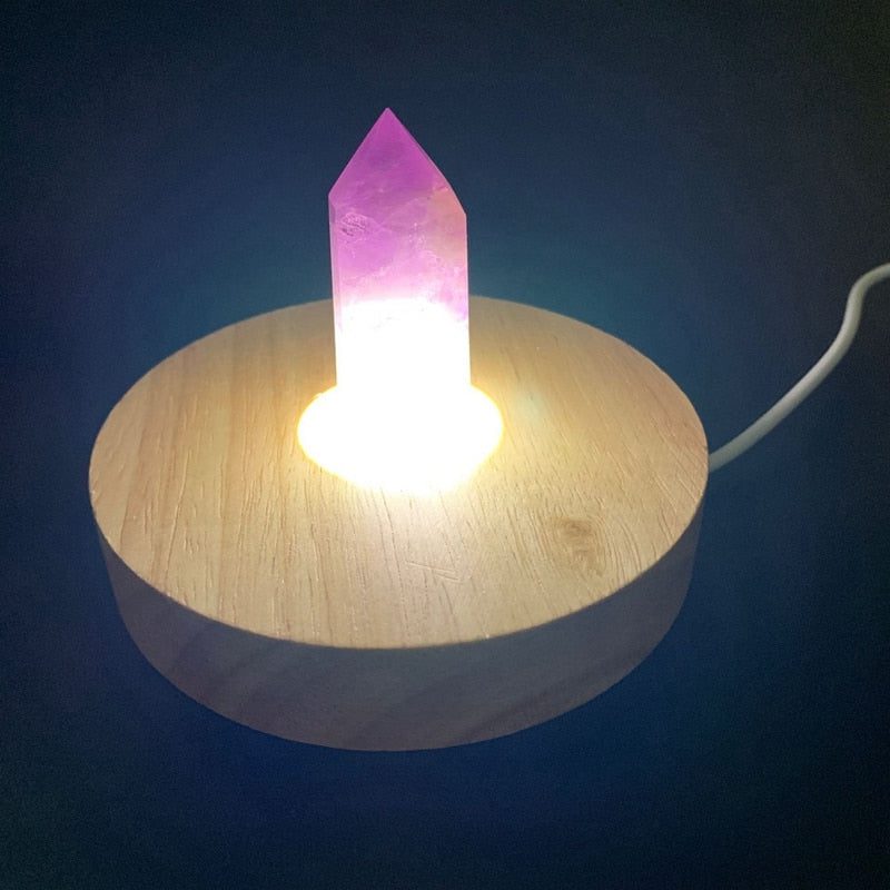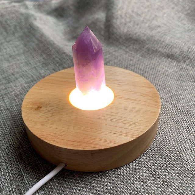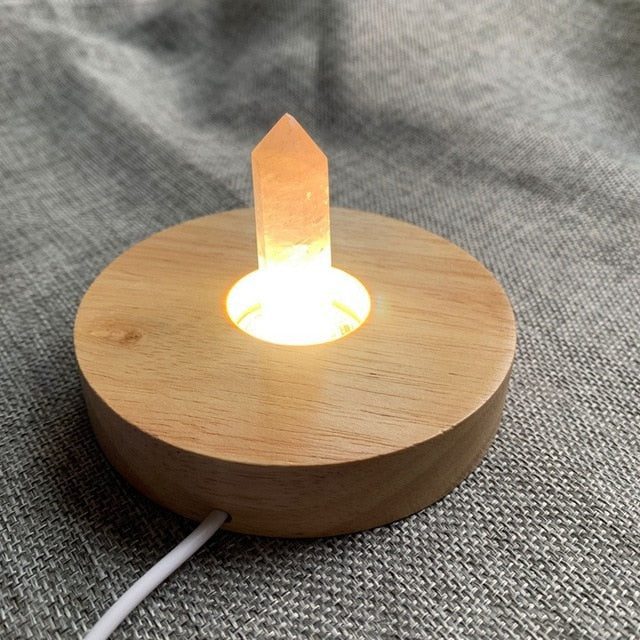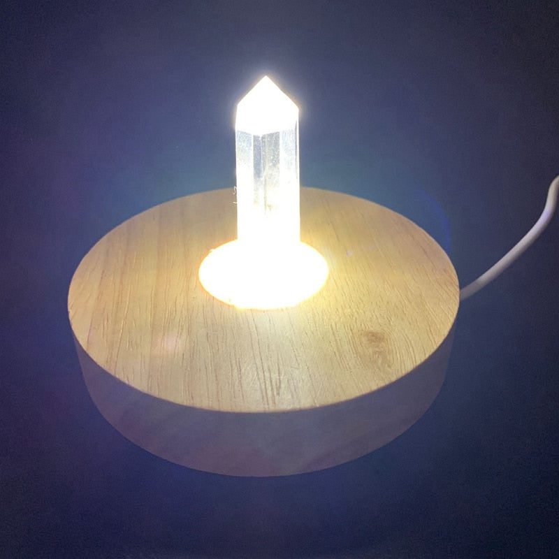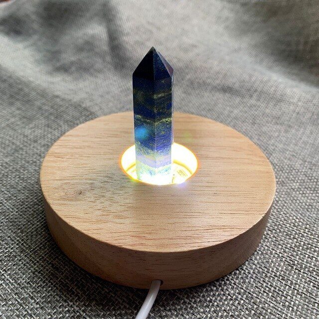 Materials:Natural stone point, Wood Lamp base, USB cable