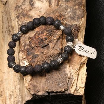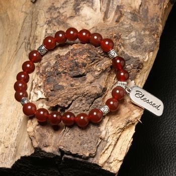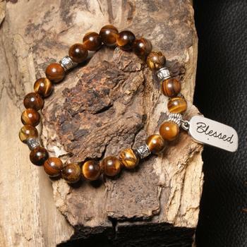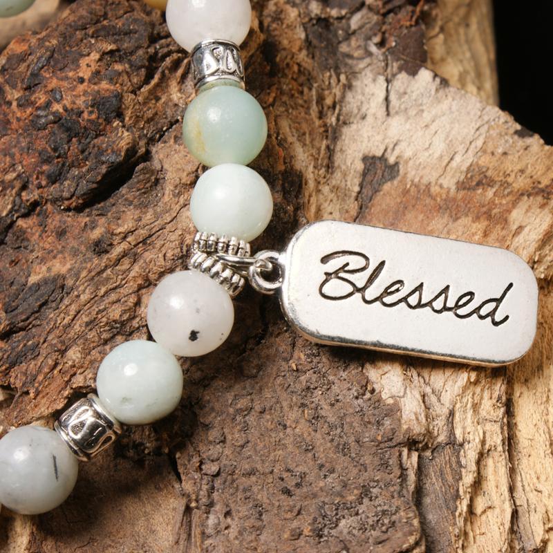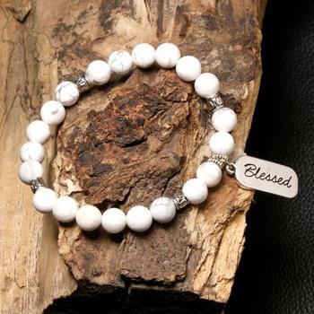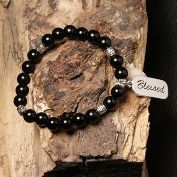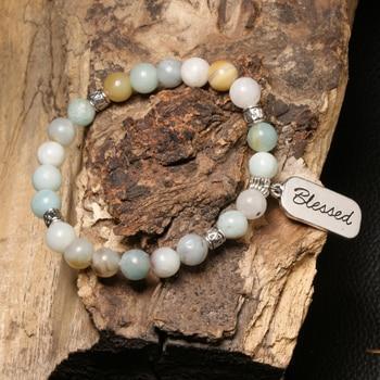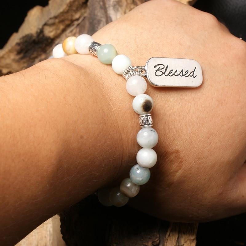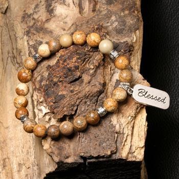 Let this Natural Stone Blessed Bracelet be your reminder to count your blessings, not your troubles. The natural stone beads are strung on a durable elastic cord making it neat and easy to wear. The bracelet is embellished with a silver plated metal tag engraved with the word "Blessed".