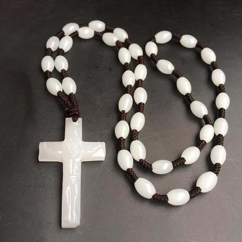 Natural White Jade Cross Pendant Necklace