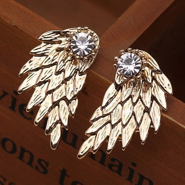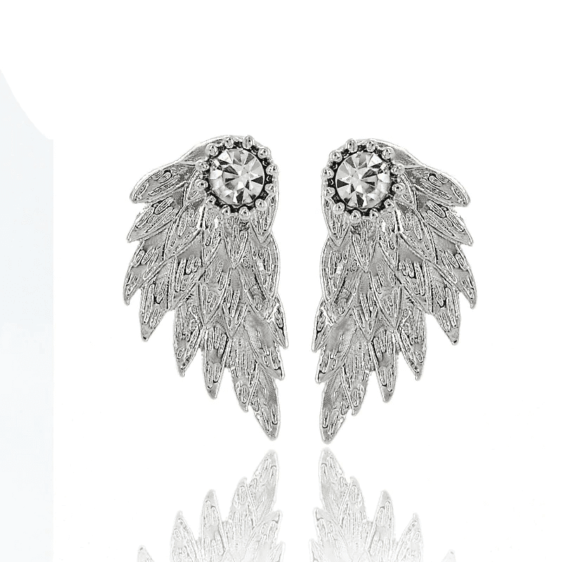 New Fashion Angel Wings Rhinestone Alloy Stud Earrings