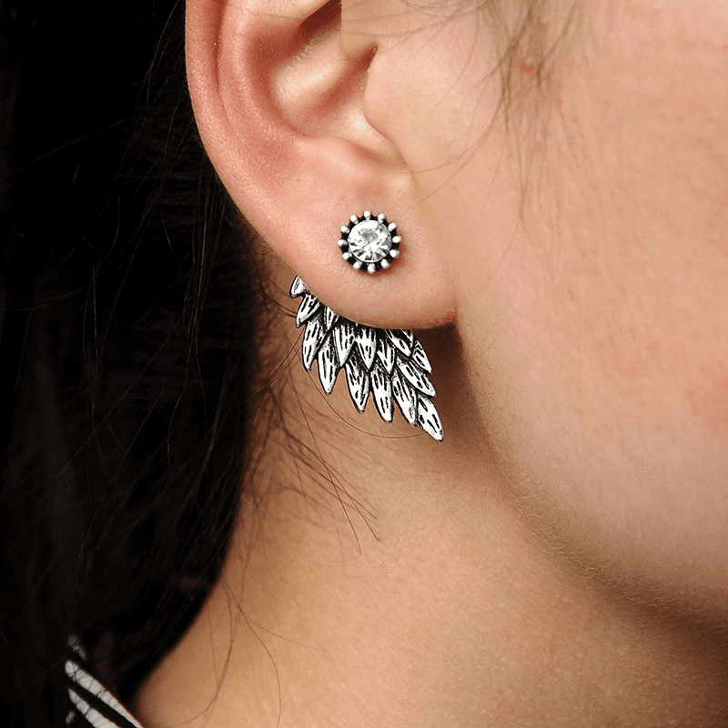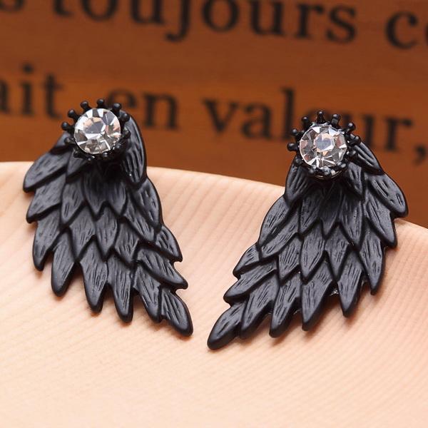 These beautiful Women's Angel Wings Rhinestone Inlaid Alloy Stud Earrings are perfect for treating yourself to jewelry and instilling confidence. You can wear these everyday, add to your outfit for that gothic look or they are elegant enough to wear to parties and special occasions. Makes a great gift as an angel aura of protection. Comes in black wings, gold wings, light silver wings or dark silver wings.