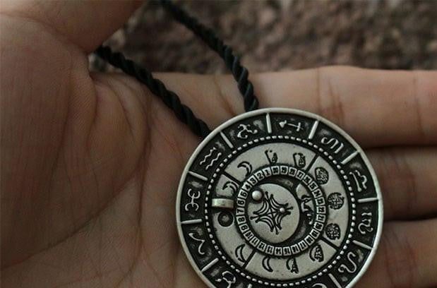 This Old Moon Phase Zodiac Amulet pairs the phases of the moon and the 12 zodiacs symbolizing how Moon Signs may be a much more accurate description of what a person is like and help define our emotional development, or express the unconscious side of our personality.