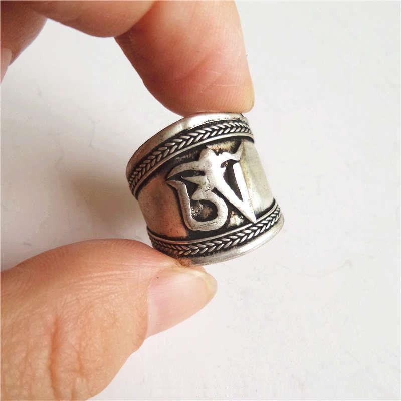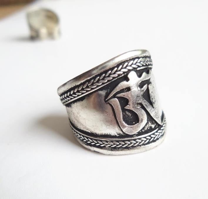 Using old metal making,one of the most well known symbols in the world is exquisitely carved on a wide open Tibetan Silver band and tinted with black tones which brings out an antique look.