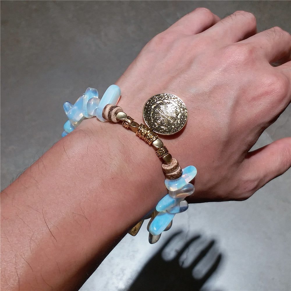 This Natural Opal Gravel Jiugong Bracelet, with its grounding chi energy, is a perfect companion. This beautiful bracelet has been designed to balance the energy flow in your body.