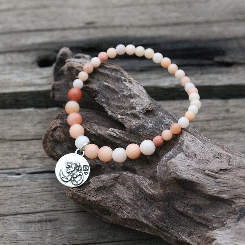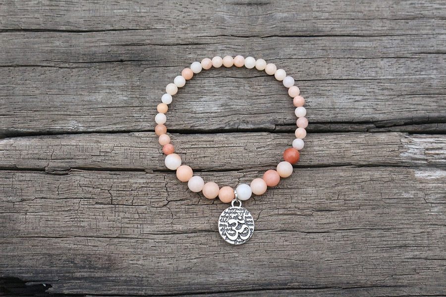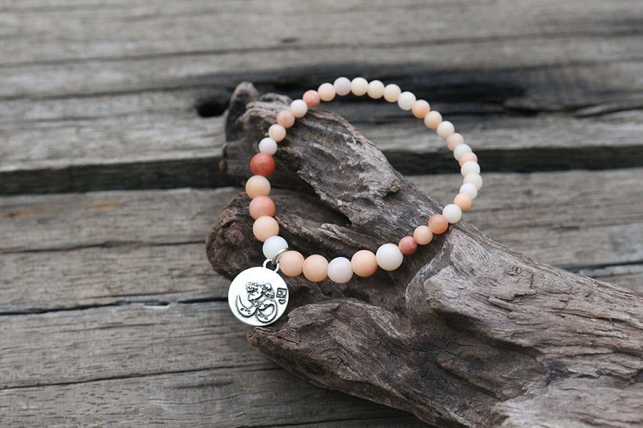 Attract good health and good luck in your life with our Prosperity and Love Pink Aventurine Om Bracelet.