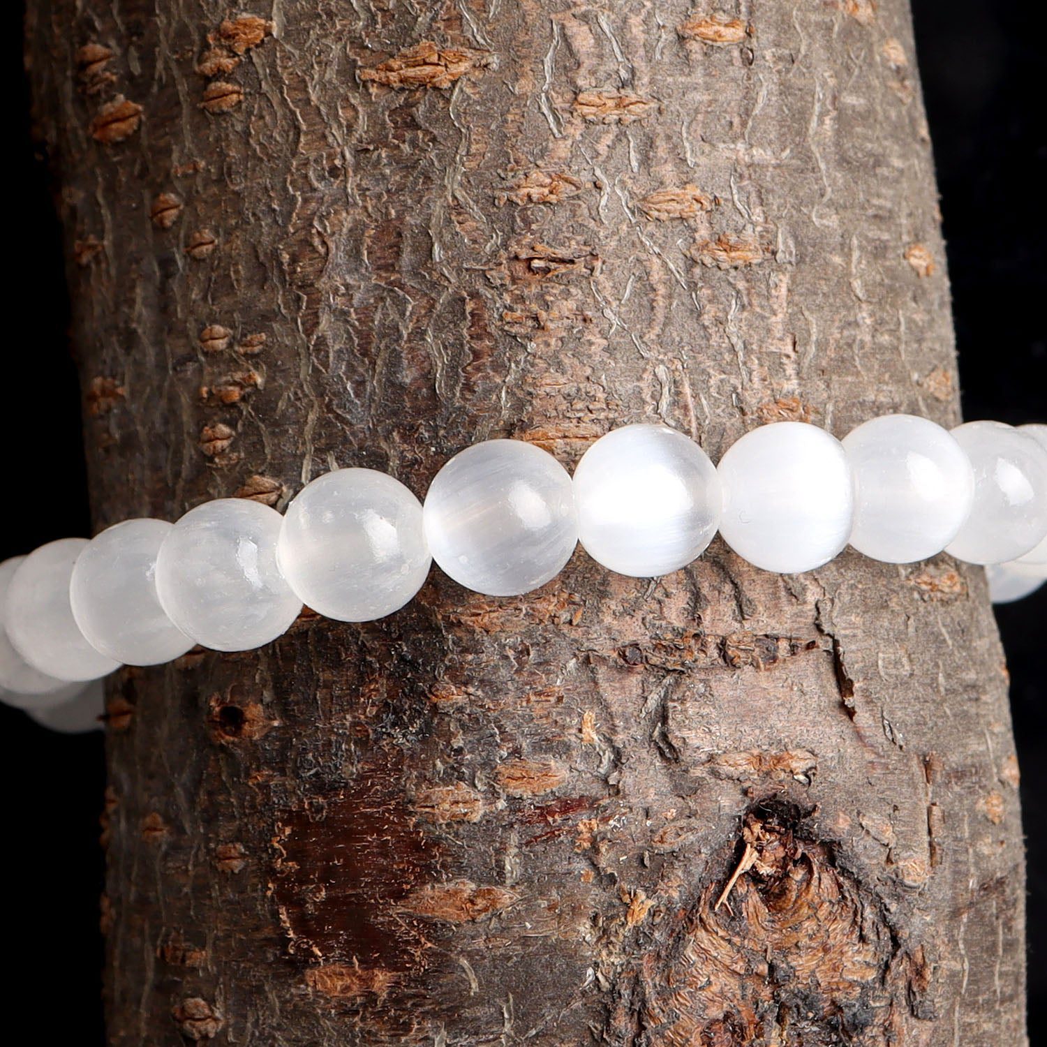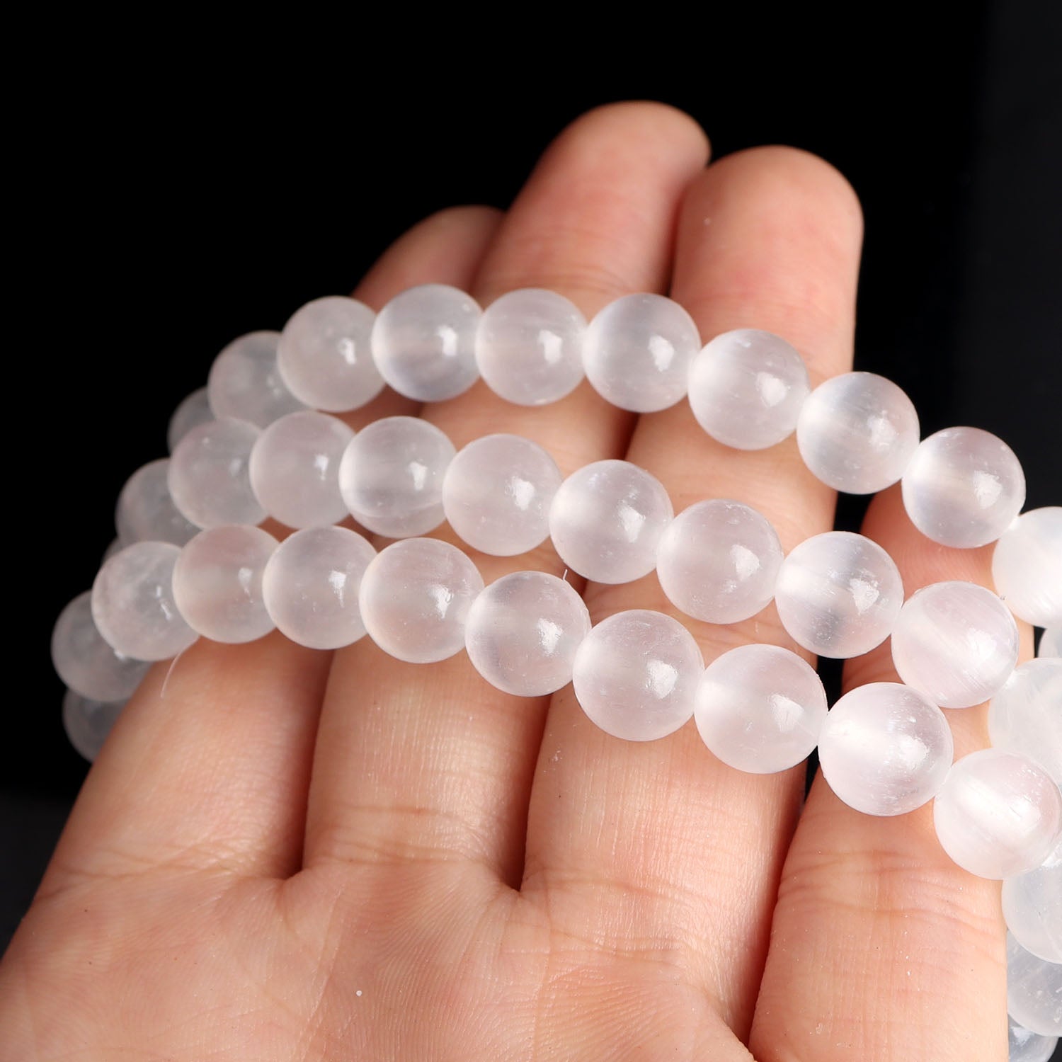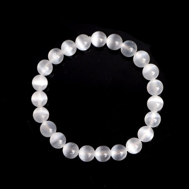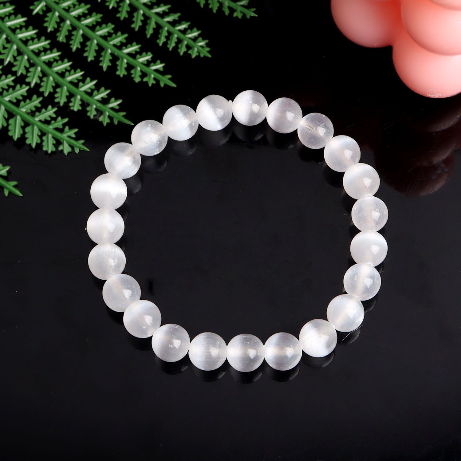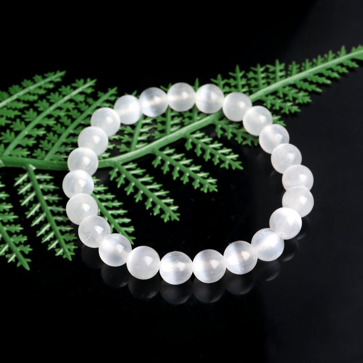 The bracelet is made of 8mm selenite beads, which are strung on a durable elastic band. The beads are smooth and polished, making them comfortable to wear.
